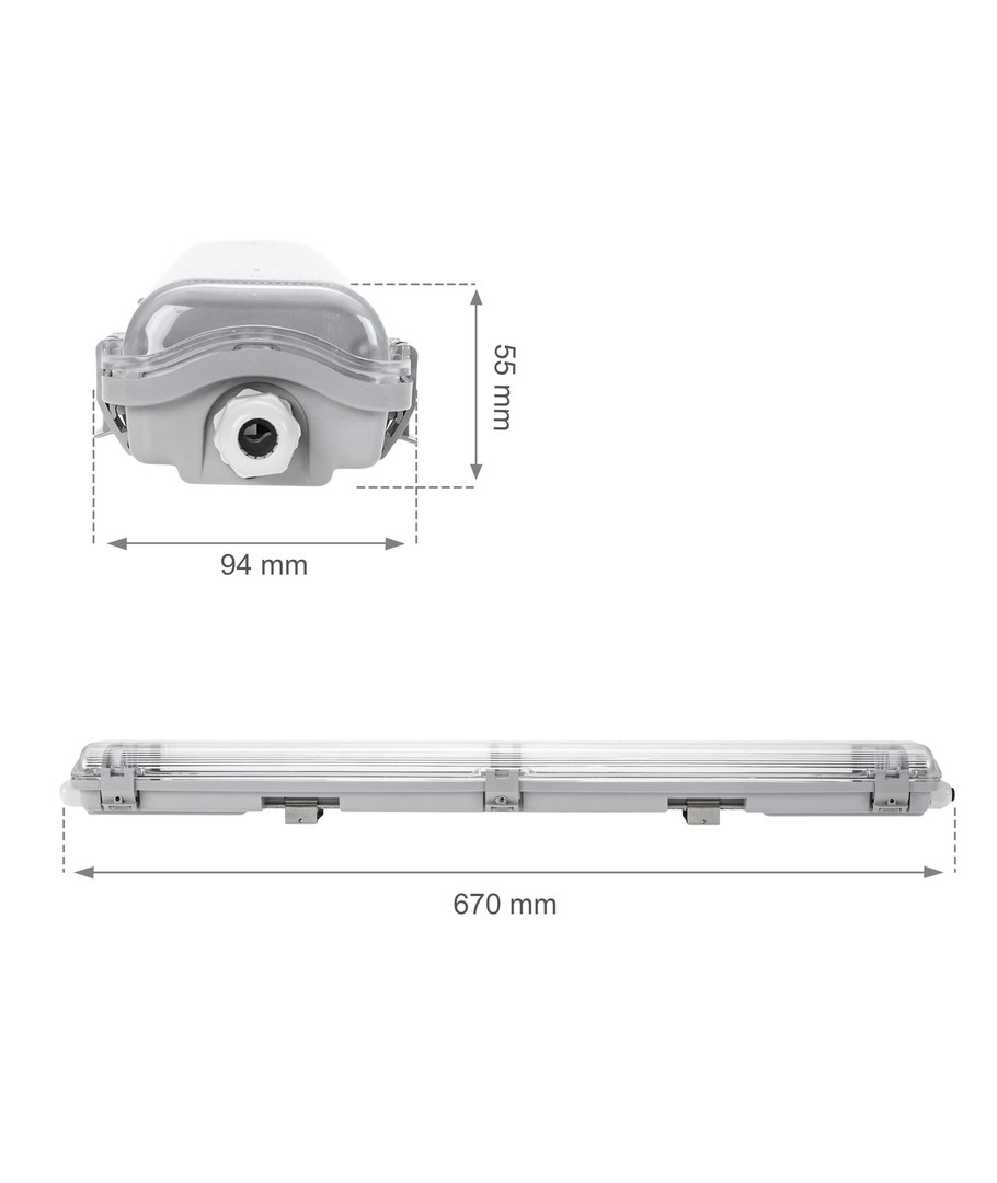 Waterdichte armatuur klaar voor 2 x 60 cm LED-buizen.