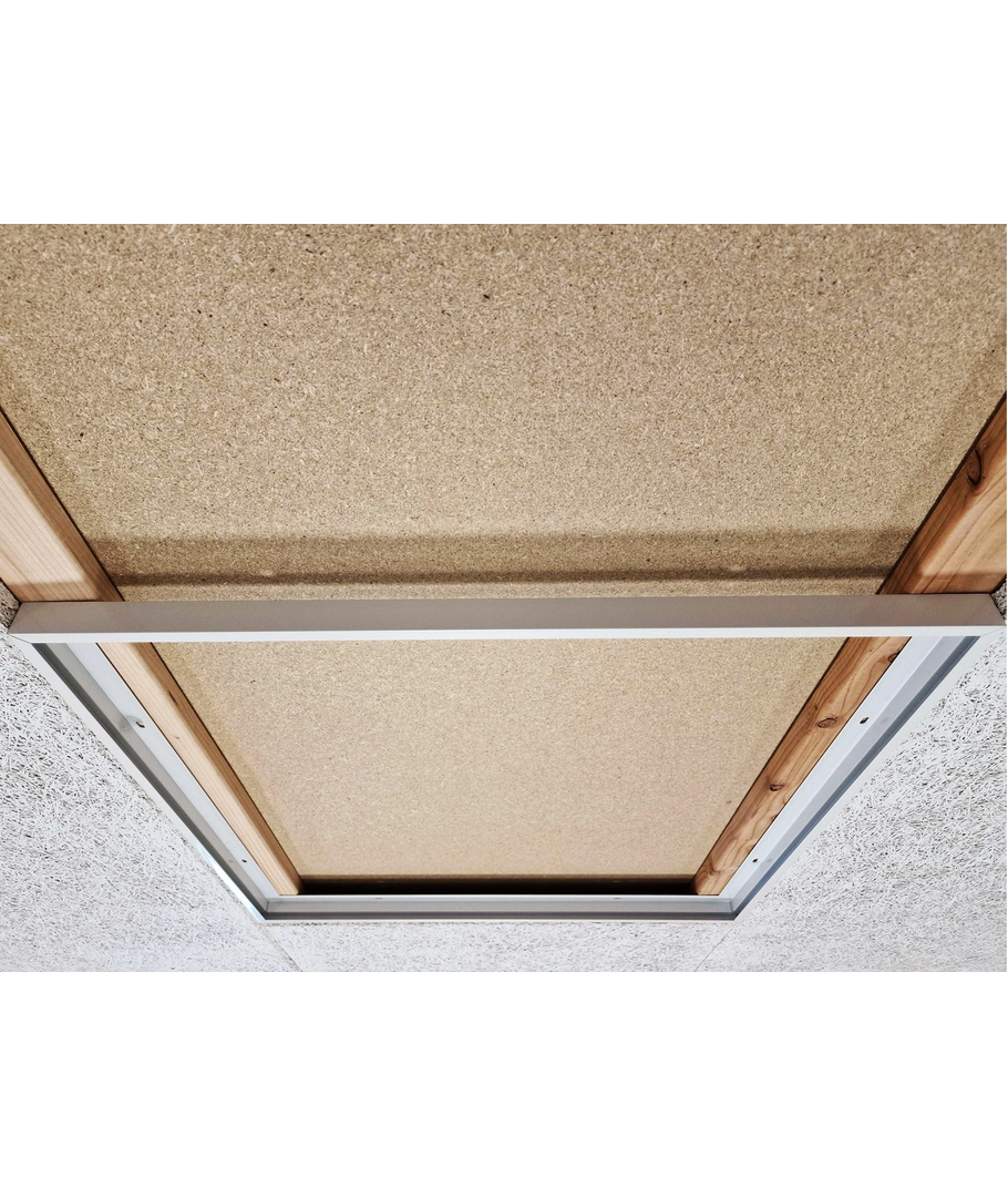 Dit inbouwframe is speciaal ontwikkeld om perfect te passen in een 60x60 opening, zonder dat er in de omliggende Troldtekt platen gesneden hoeft te worden.