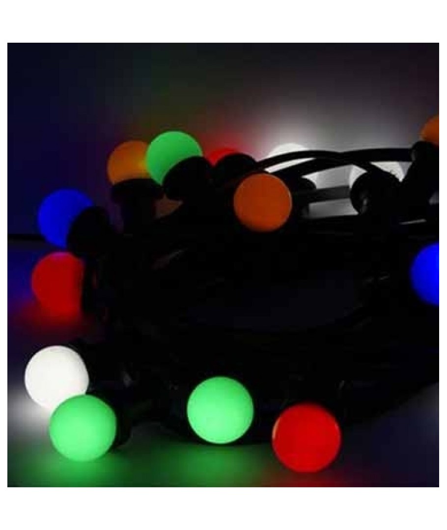 5 meter spatwaterdichte lichtsnoer met 10 stuks 0,5W, verdeeld over rood, groen, blauw en geel.
