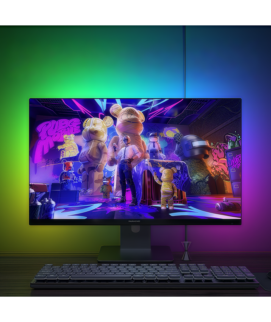 Breng nieuw leven in je setup met RGBIC LED Achtergrondverlichting voor PC-scherm, die het licht in realtime synchroniseert met je gameplay of muziek. Perfect voor gamers die een intensere, kleurrijkere en sfeervollere ervaring voor het scherm willen.