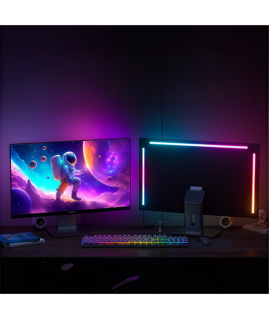 Breng nieuw leven in je setup met RGBIC LED Achtergrondverlichting voor PC-scherm, die het licht in realtime synchroniseert met je gameplay of muziek. Perfect voor gamers die een intensere, kleurrijkere en sfeervollere ervaring voor het scherm willen.