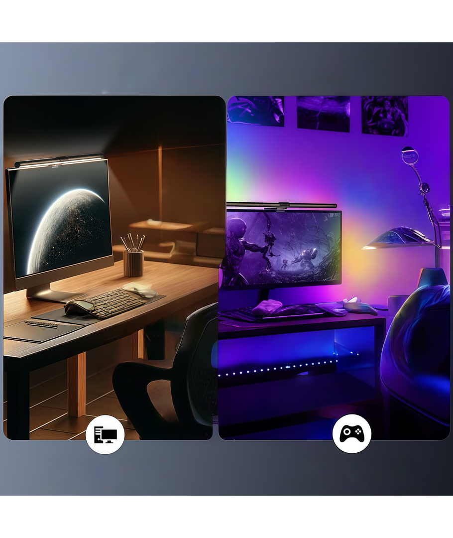Upgrade je computerscherm met onze CCT+RGB Monitor Light Bar – het ultieme comfortlicht voor iedereen die van kleurrijke vibes houdt.