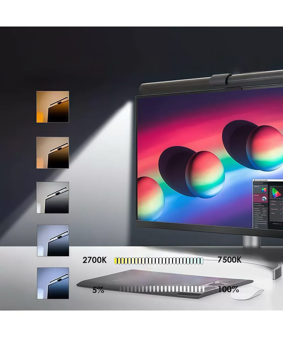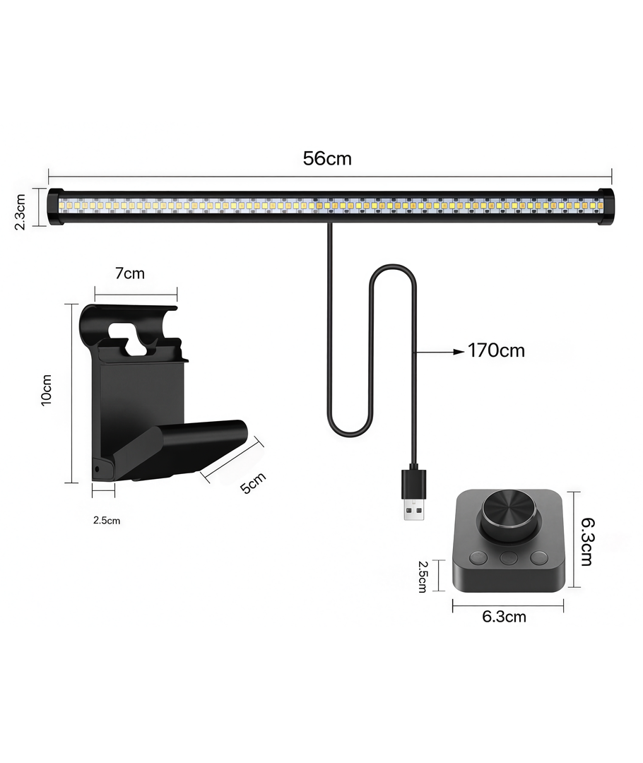 Creëer de perfecte verlichting voor je scherm met deze 55 cm schermverlichting, die stijlvol design combineert met functionaliteit. Het licht wordt eenvoudig boven op je scherm gemonteerd en biedt een gelijkmatige, verblindingsvrije verlichting, waardoor werken of gamen comfortabeler wordt – zelfs als het laat wordt.