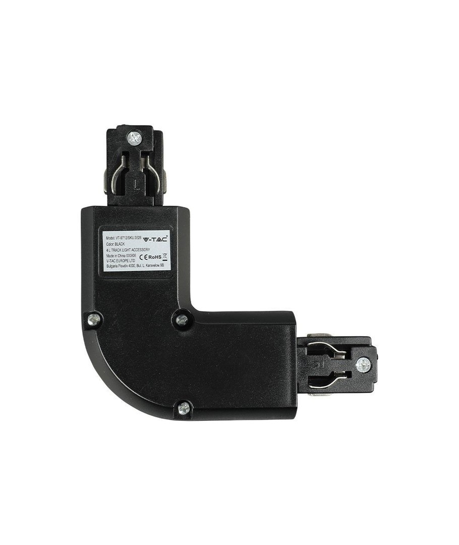Hoekstuk om twee rails voor spots met railverlichting aan elkaar te verbinden.
