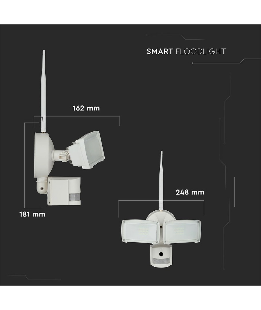 Met de ingebouwde WiFi sensor camera kun je je omgeving in de gaten houden, wat de veiligheid in je huis of op de werkplek verhoogt. De schijnwerper biedt een slimme oplossing voor verlichting en bewaking, die waarde en comfort toevoegt aan je ruimtes.