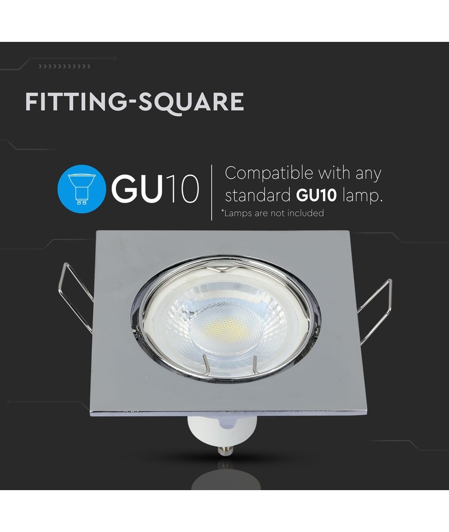 GU10 lamp - vierkant in chroom design, dat stijl combineert met functionaliteit door efficiënte verlichting te leveren.