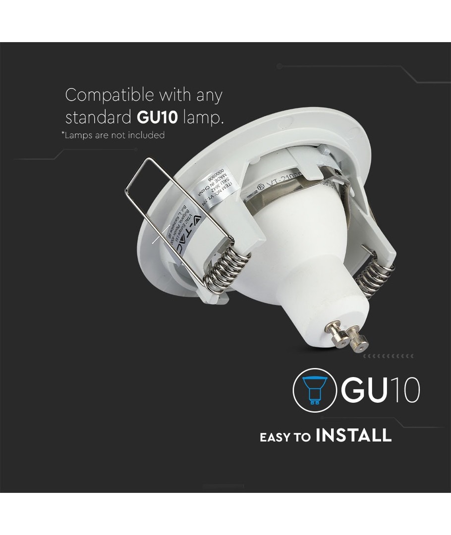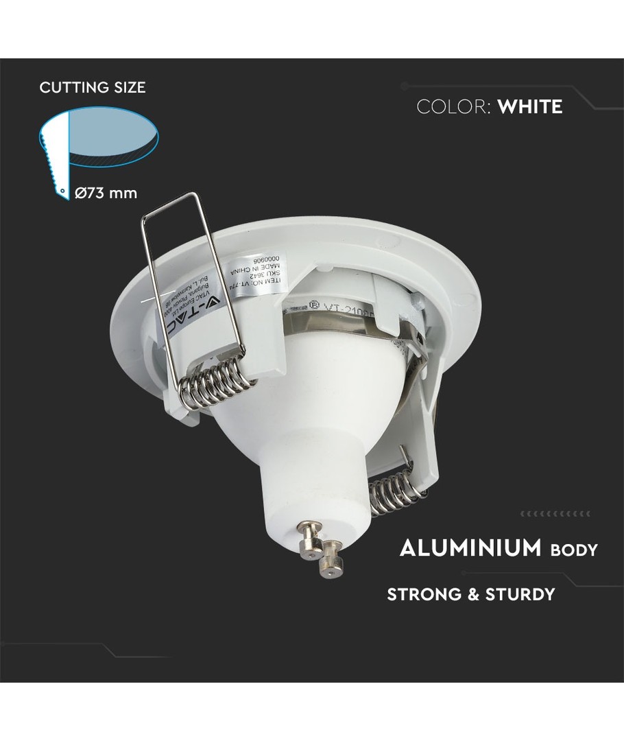 GU10 inbouwspot - Wit, aluminium, IP20 binnen, Gat: Ø7,3 cm, Afm: Ø8,1 cm V-TAC Uitklappen