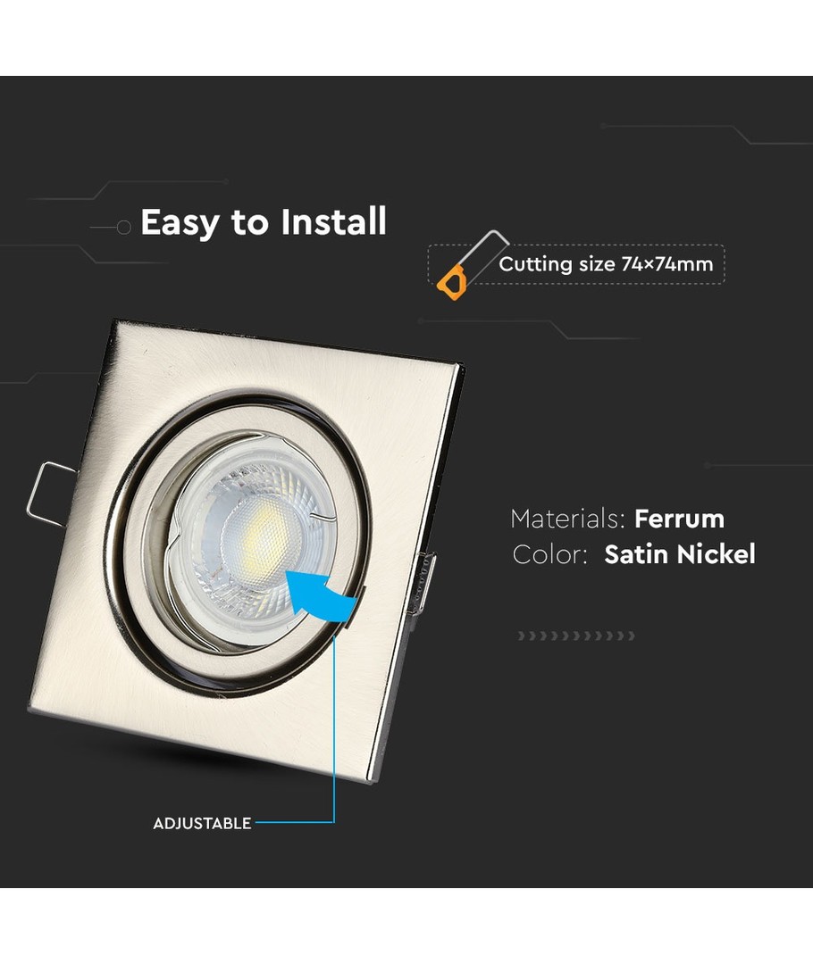 GU10 Lamp - Vierkant in satijn nikkel finish, een moderne en stijlvolle verlichtingsoplossing.