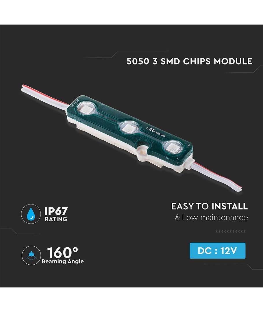 5050 Module is een uitstekende oplossing voor iedereen die werkt aan zowel commerciële als particuliere verlichtingsprojecten. Met de mooie blauwe kleur en flexibele toepasbaarheid kunt u dynamische lichteffecten creëren in bewegwijzering, tentoonstellingen of andere installatieprojecten.