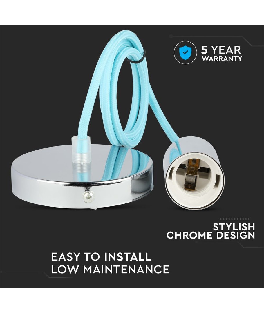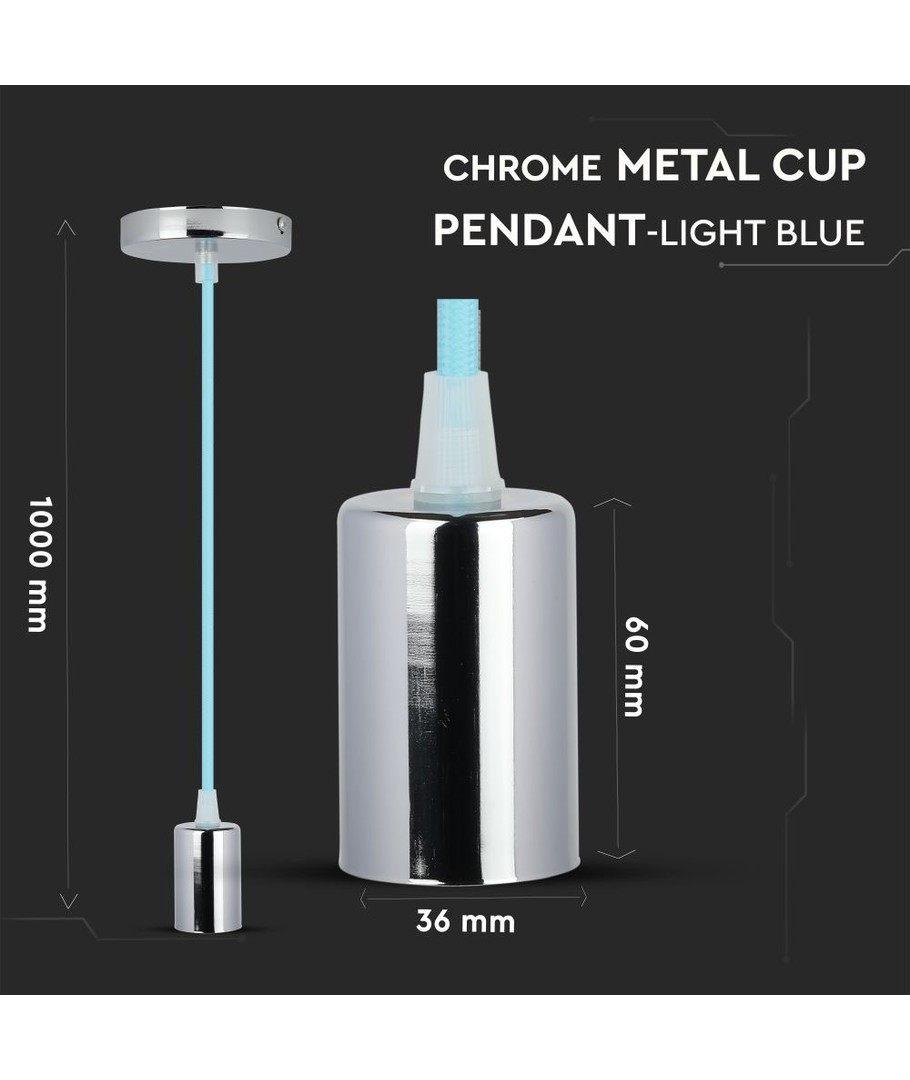 E27 Chroom Metalen Cup Hanglamp - Lichtblauw V-TAC Uitklappen