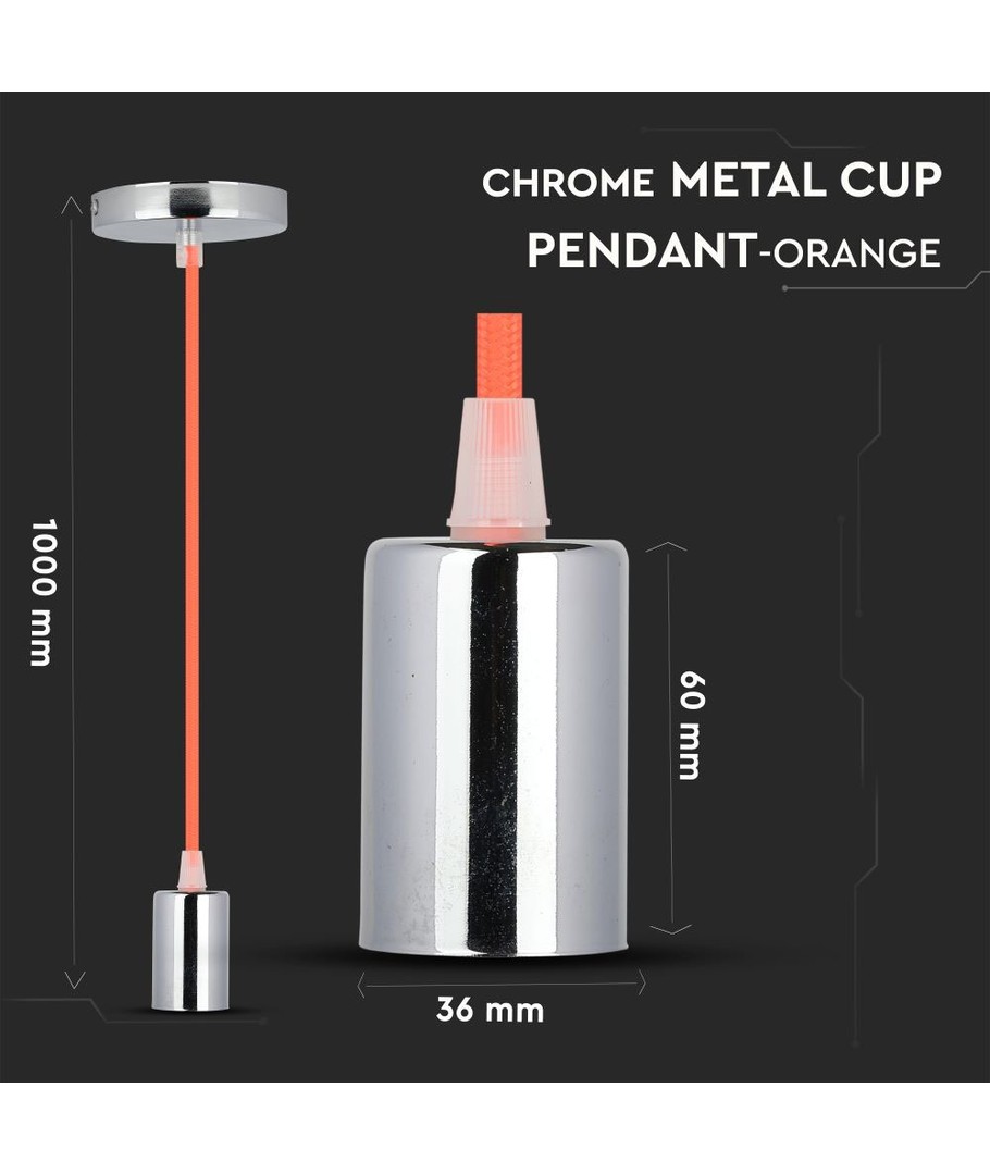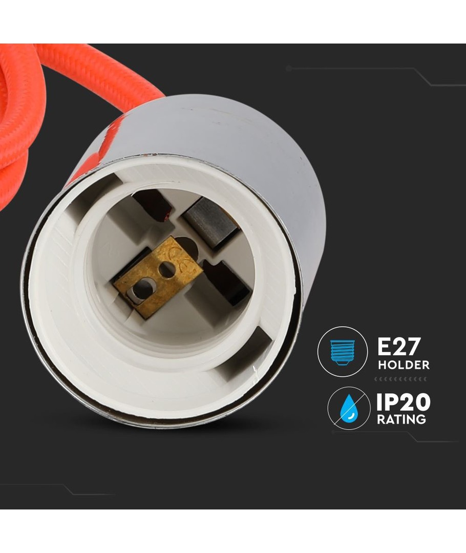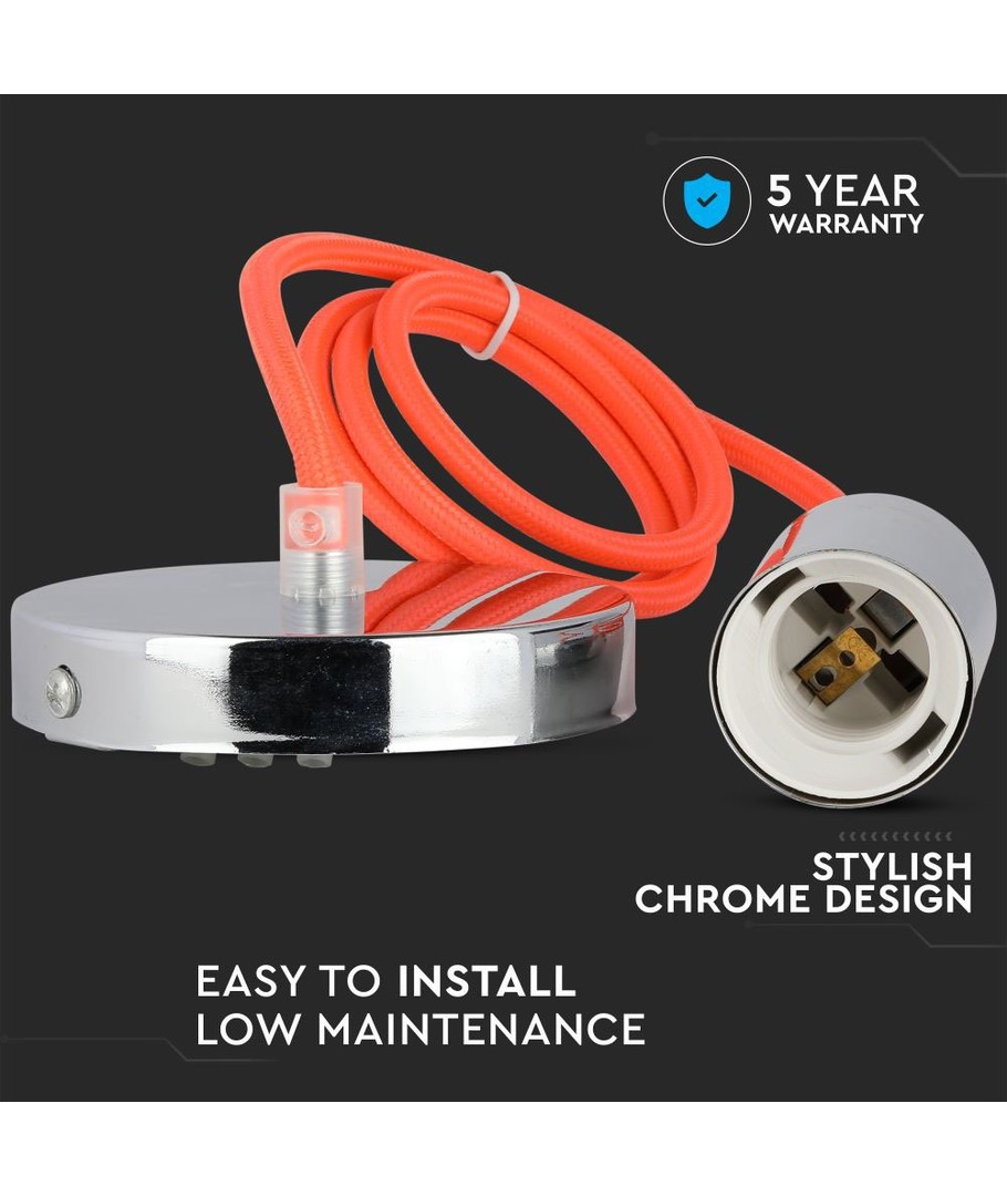 E27 pendelophanging in chroom met oranje kabel - Ø3,6 cm, zonder lichtbron, IP20 V-TAC Uitklappen