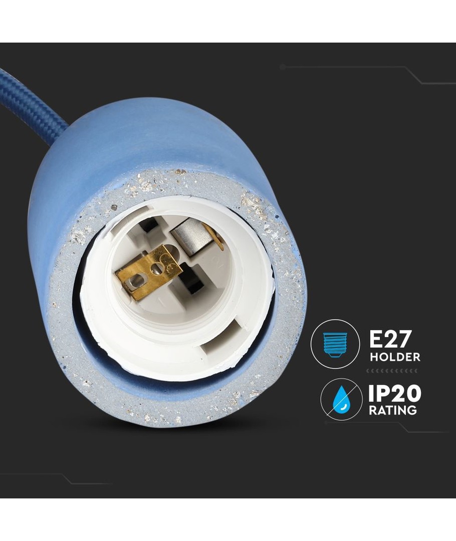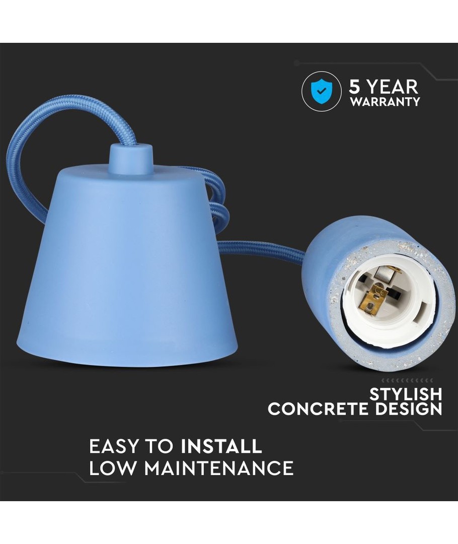 E27 hanglamp in beton en blauw zorgt voor een moderne en stijlvolle verlichting.