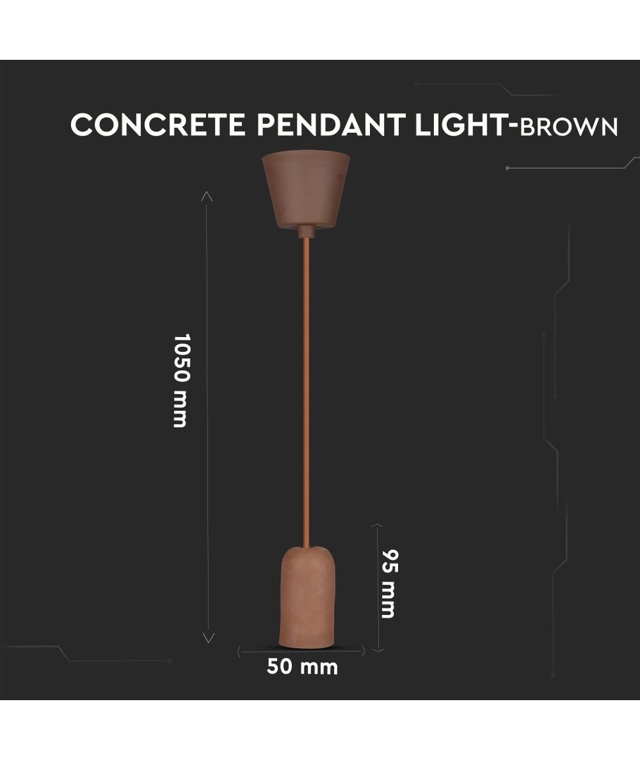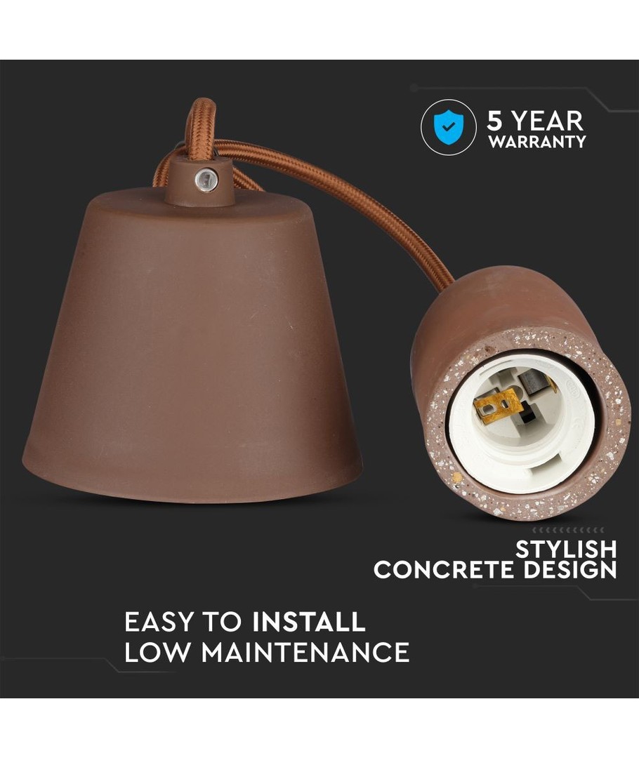 E27 pendel in bruin beton - Ø5cm, zonder lichtbron, max 60W V-TAC Uitklappen