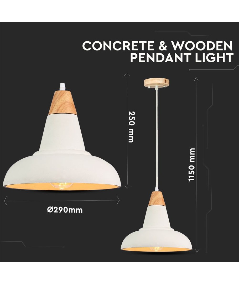 E27 Hanglamp - Beton+Hout, Ø300 is een stijlvolle lamp gecombineerd van beton en hout, die past bij moderne interieurs.