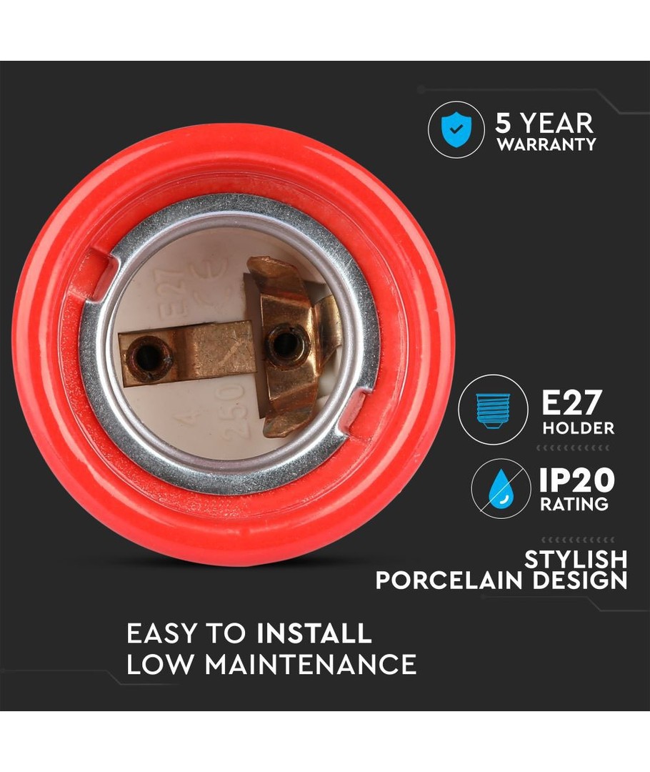 E27 porseleinen fitting, rood - Max 60W, Ø4,7cm, voor ophanging V-TAC Uitklappen