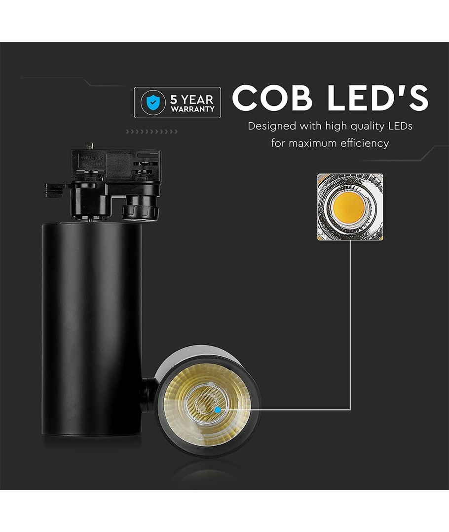 Kies voor de 30W LED Railspot voor een verlichtingsoplossing die hoge prestaties combineert met een lange levensduur en een gestroomlijnd design.