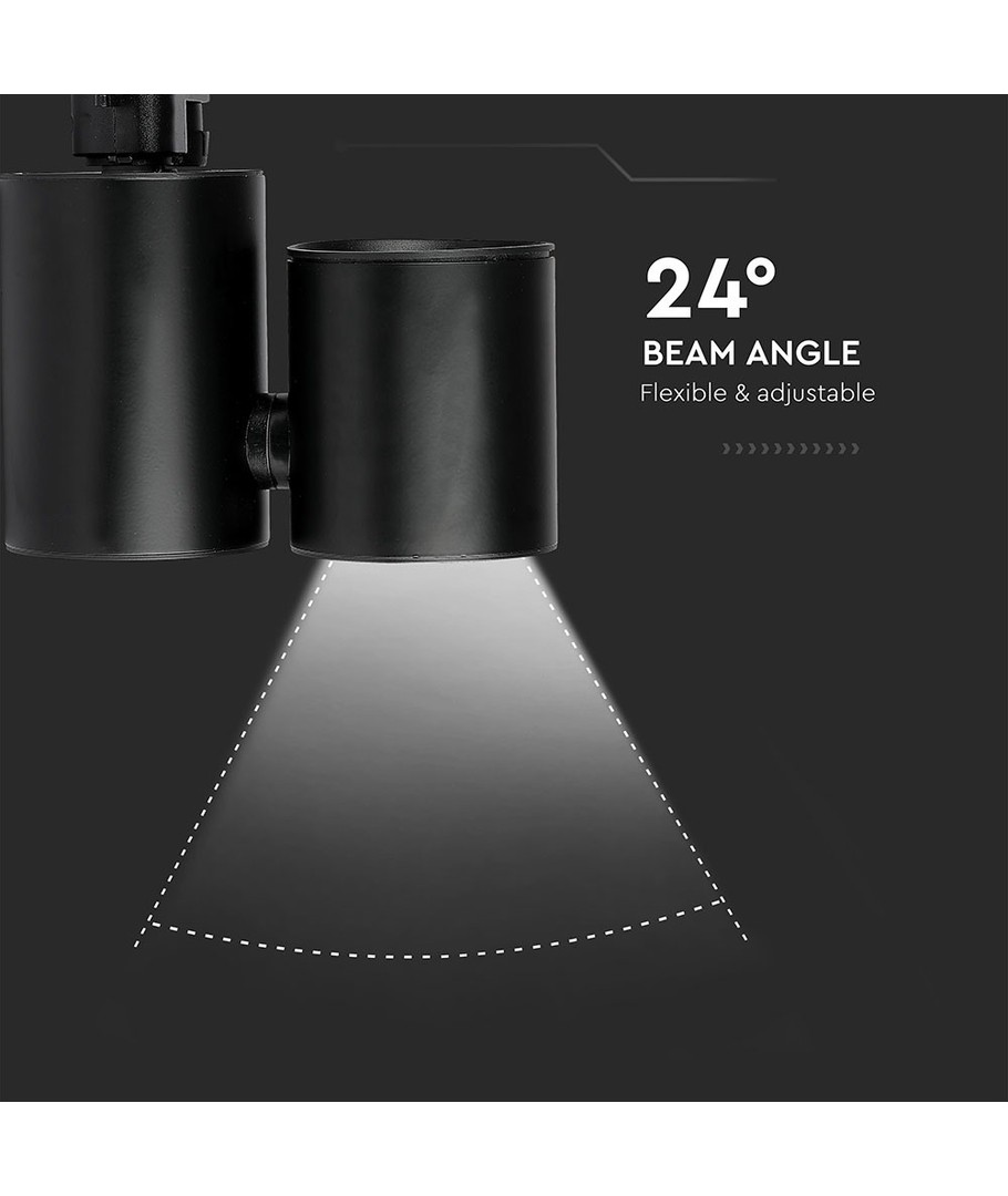 Deze railsspot is ontworpen om te voldoen aan de hoogste eisen op het gebied van lichtkwaliteit en efficiëntie. Met een vermogen van 15W levert hij een krachtige lichtopbrengst van 1350 lumen, ideaal voor gebieden die gericht licht vereisen. De smalle stralingshoek van 24 graden zorgt voor gecontroleerd licht dat specifieke gebieden of objecten accentueert.