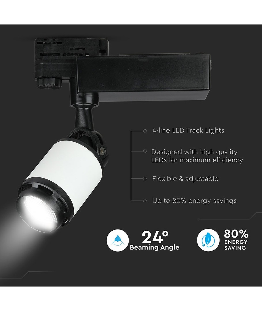 Deze railspot maakt deel uit van de V-Tac Pro serie, die kwaliteit en duurzaamheid belooft met een 5 jaar fabrieksgarantie. Dankzij LED-technologie van de hoogste kwaliteit kunt u een gebruiksduur van maximaal 30.000 uur verwachten zonder noemenswaardig lichtverlies. De professionele en betrouwbare driver samen met goede koeling zorgt voor een lange productlevensduur.