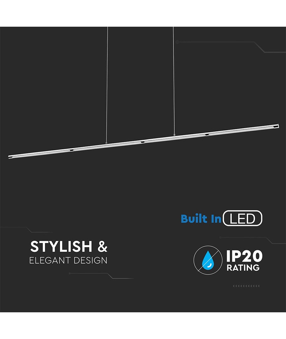 Met afmetingen van 1820 x 55 x 800 mm past deze hanglamp perfect in grote ruimtes en geeft het een sterk visueel statement. Let op dat hij een IP20-classificatie heeft, wat betekent dat hij niet waterdicht is.