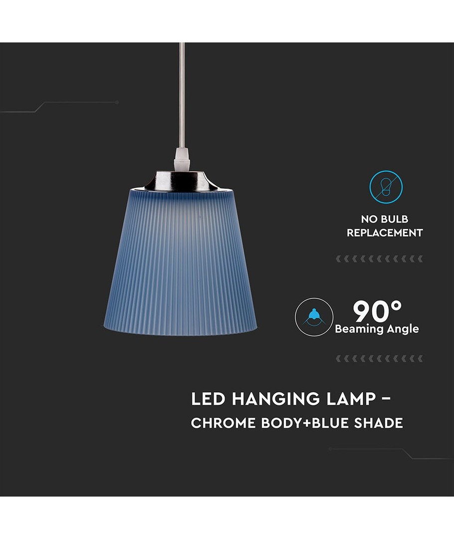 Ervaar een 7W plafondlamp met een unieke stijl en indrukwekkende functionaliteit, die uw ruimtes verlicht met indirect en gelijkmatig licht. Met een verfijnde chroom behuizing en een blauw scherm voegt deze plafondlamp een moderne touch toe aan elk interieur.