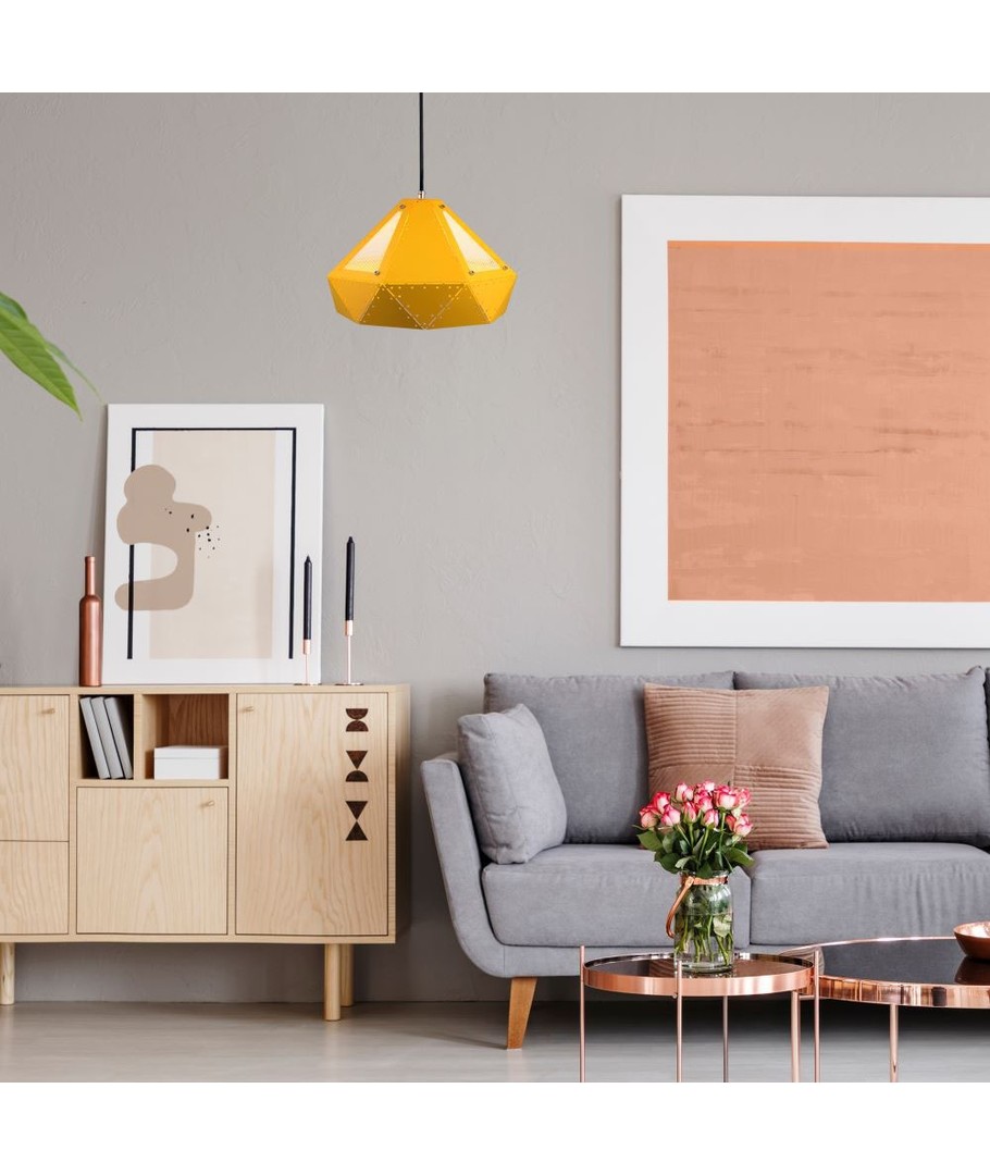 De opvallende gele tint van de lampenkap voegt een levendige en frisse toon toe die moderne interieurtrends complimenteert. Deze lamp gebruikt een E27 fitting, waardoor het gemakkelijk is om compatibele lampen te vinden die passen bij jouw verlichtingsbehoeften.