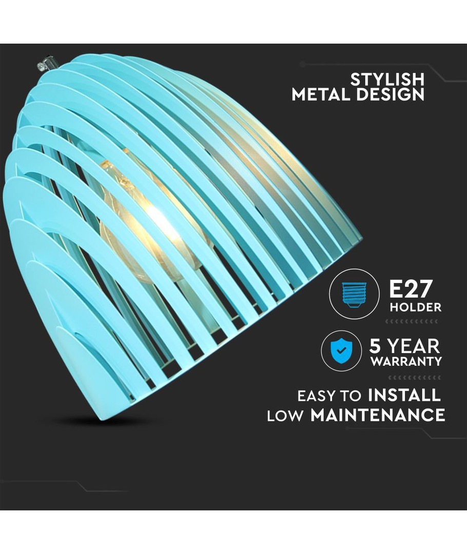 Breng een vleugje elegantie in uw huis met deze moderne hanglamp uit de V-Tac Pro serie. Met zijn prachtige kegelvormige design en diepblauwe kleur voegt deze lamp een verfijnde uitstraling toe aan elke ruimte.
