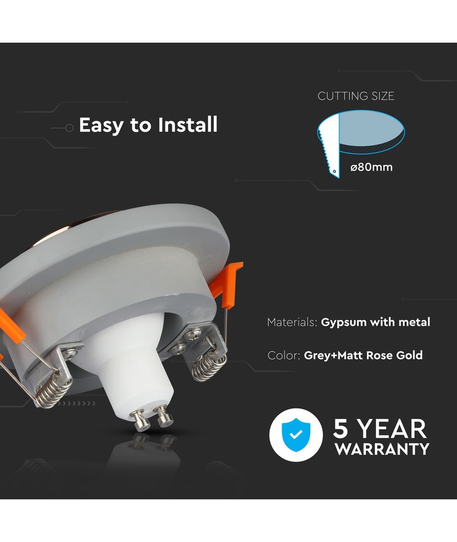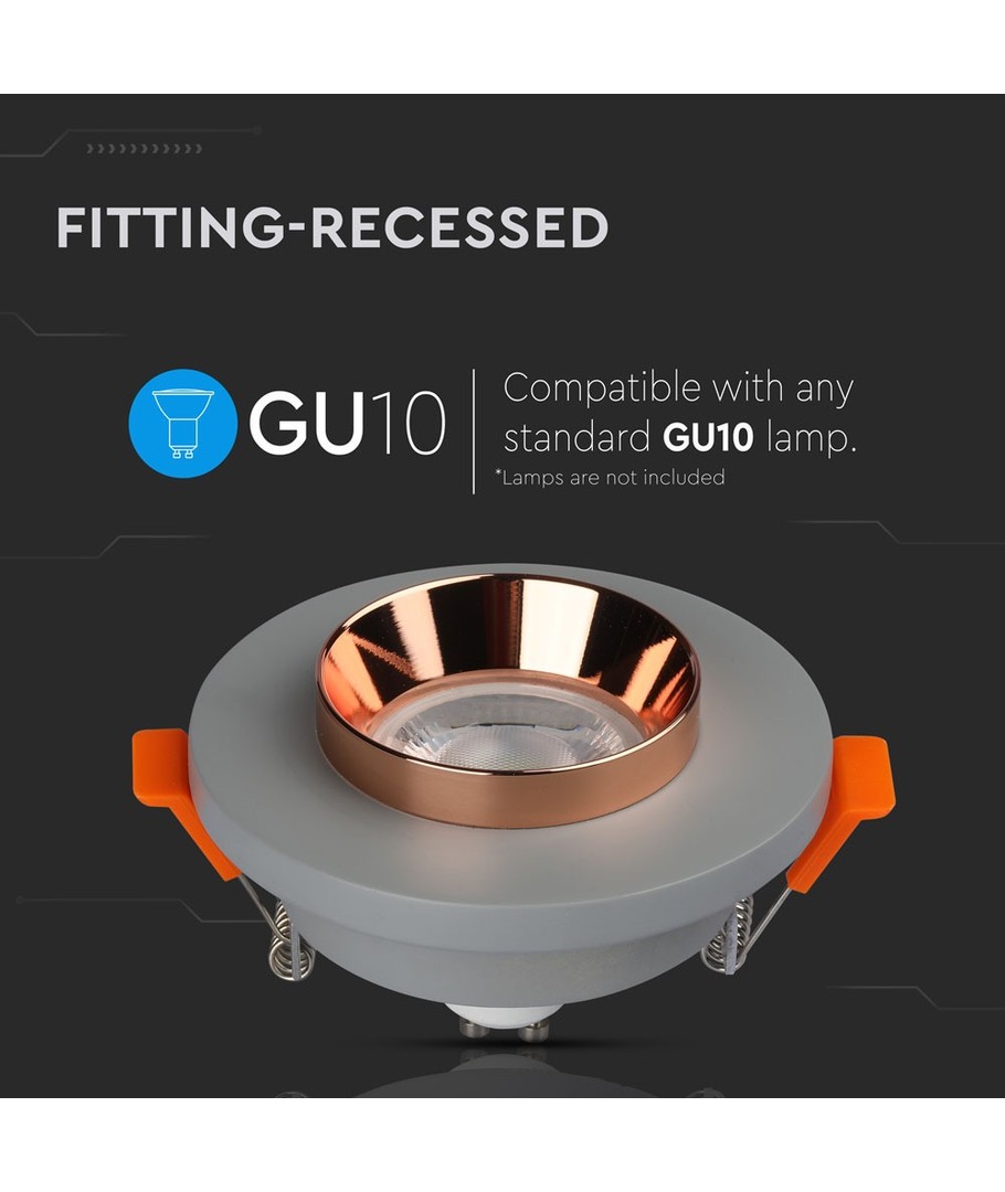 GU10 Grijs Beton (inbouw) met Matte Roze Goud Bodem-Rond V-TAC Uitklappen
