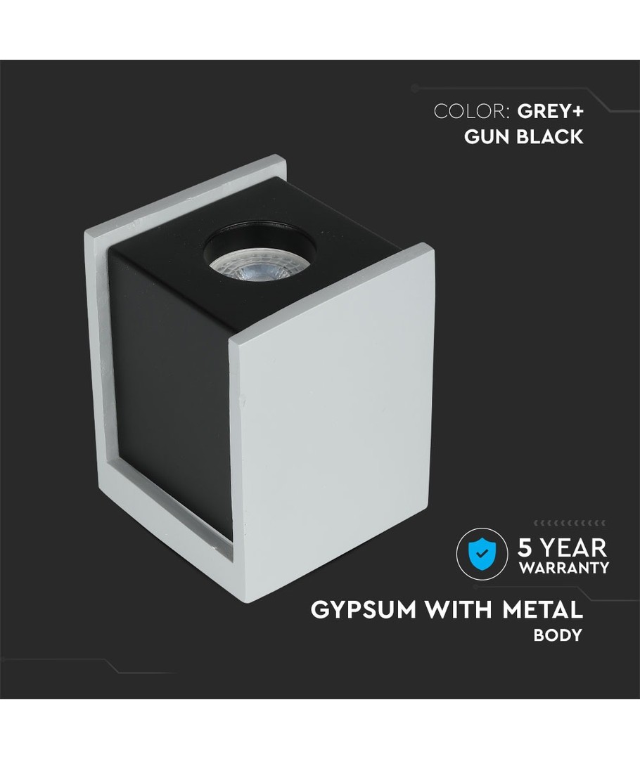 GU10 spot met een unieke grijze beton- en gunmetal zwarte basis.