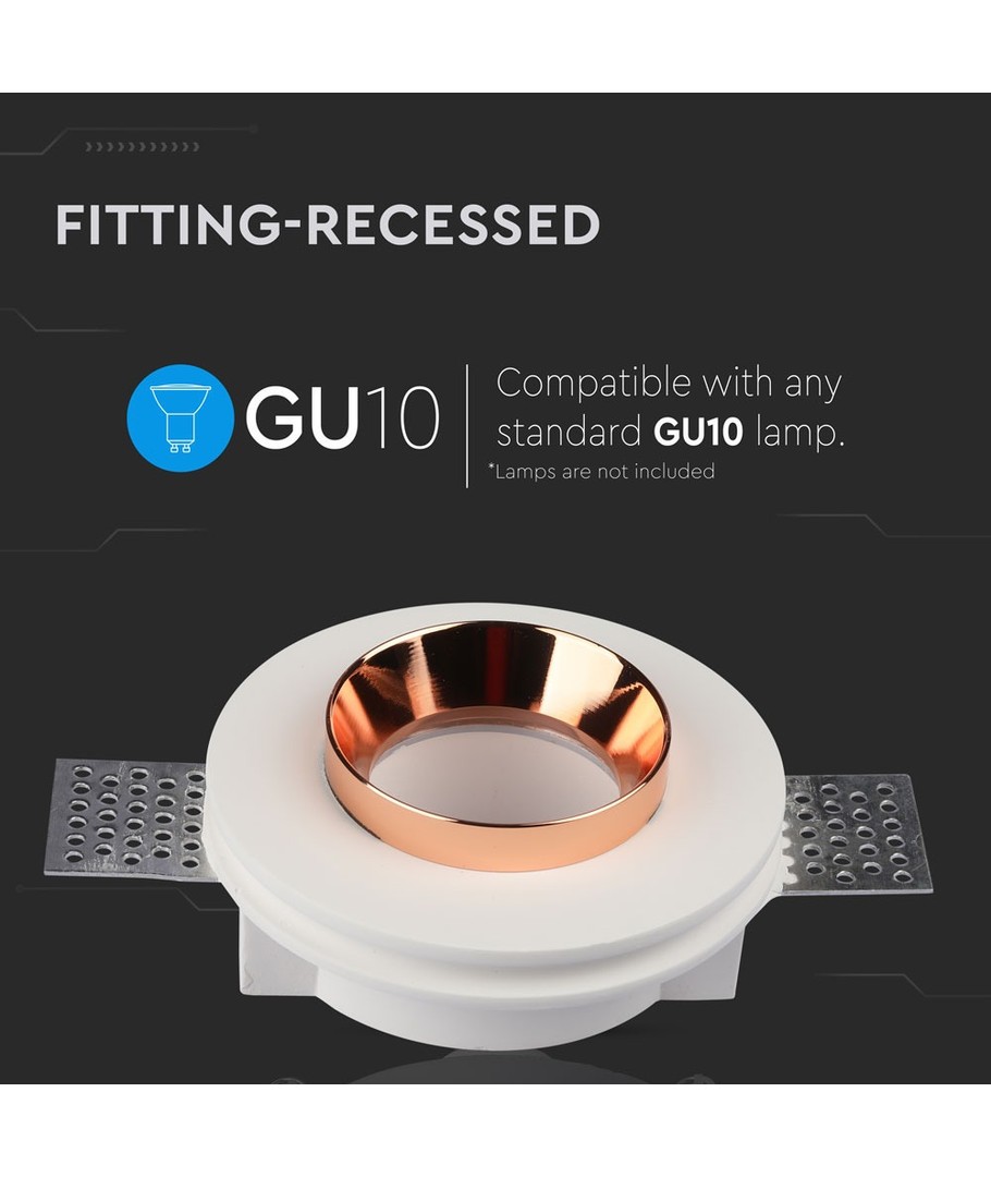 GU10 wit gips (inbouw) met mat roségoud metaal is een stijlvol en functioneel verlichtingsarmatuur dat perfect past bij moderne interieurs.