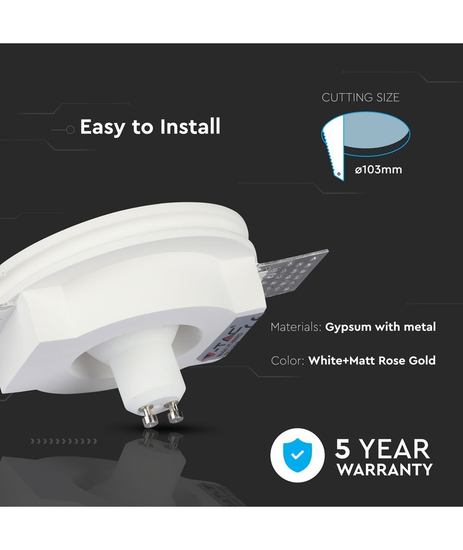 GU10 inbouwspot in gips - Rond, wit met mat rosé goud, zonder lichtbron V-TAC Uitklappen