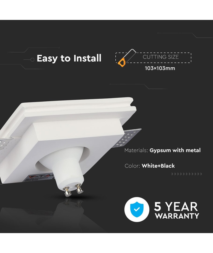 GU10 inbouwspot in wit gips, vierkant - 100x100 mm, IP20 binnen, 5 jaar garantie V-TAC Uitklappen