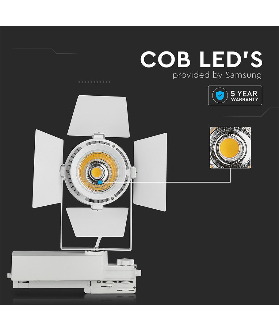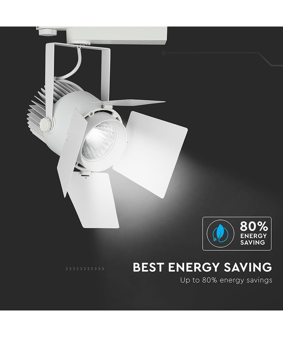 Lichtsterkte: Deze LED railspot levert een indrukwekkende lichtsterkte van 3000 lumen, wat zorgt voor helder en gefocust licht. Hij is aanpasbaar met lichtbundels van 24 of 60 graden, voor gecontroleerde verlichting.