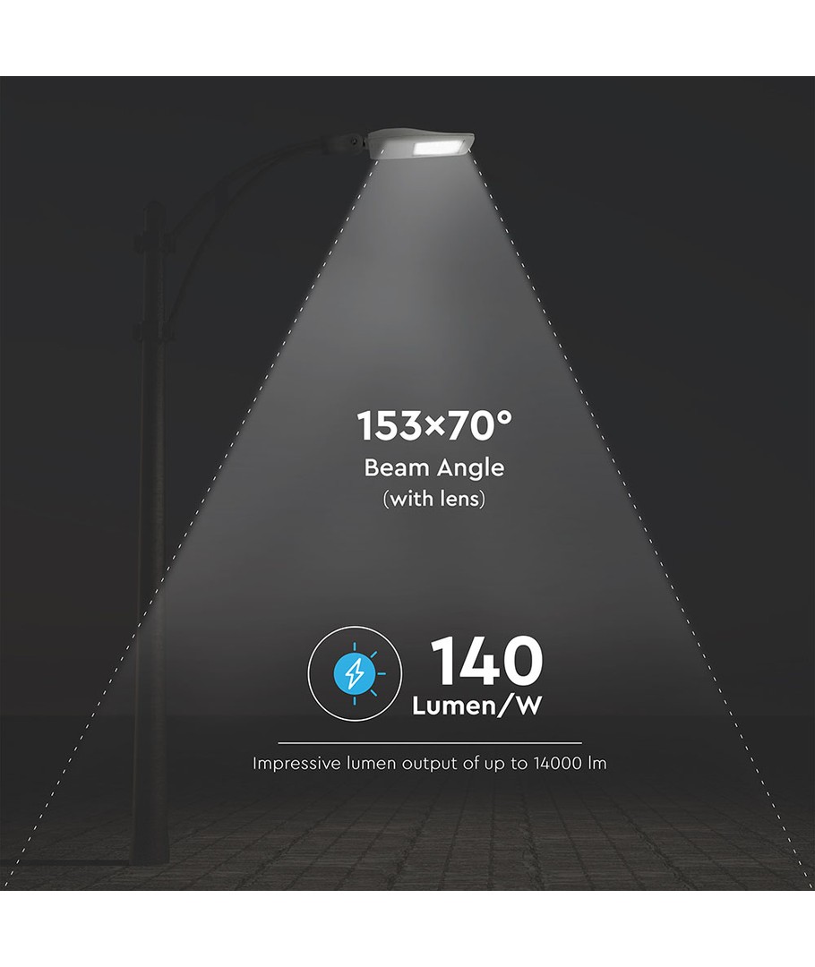 Kies voor deze 100W LED straatlamp voor een superieure lichtbeleving die zowel energiezuinig is als weinig onderhoud kost.
