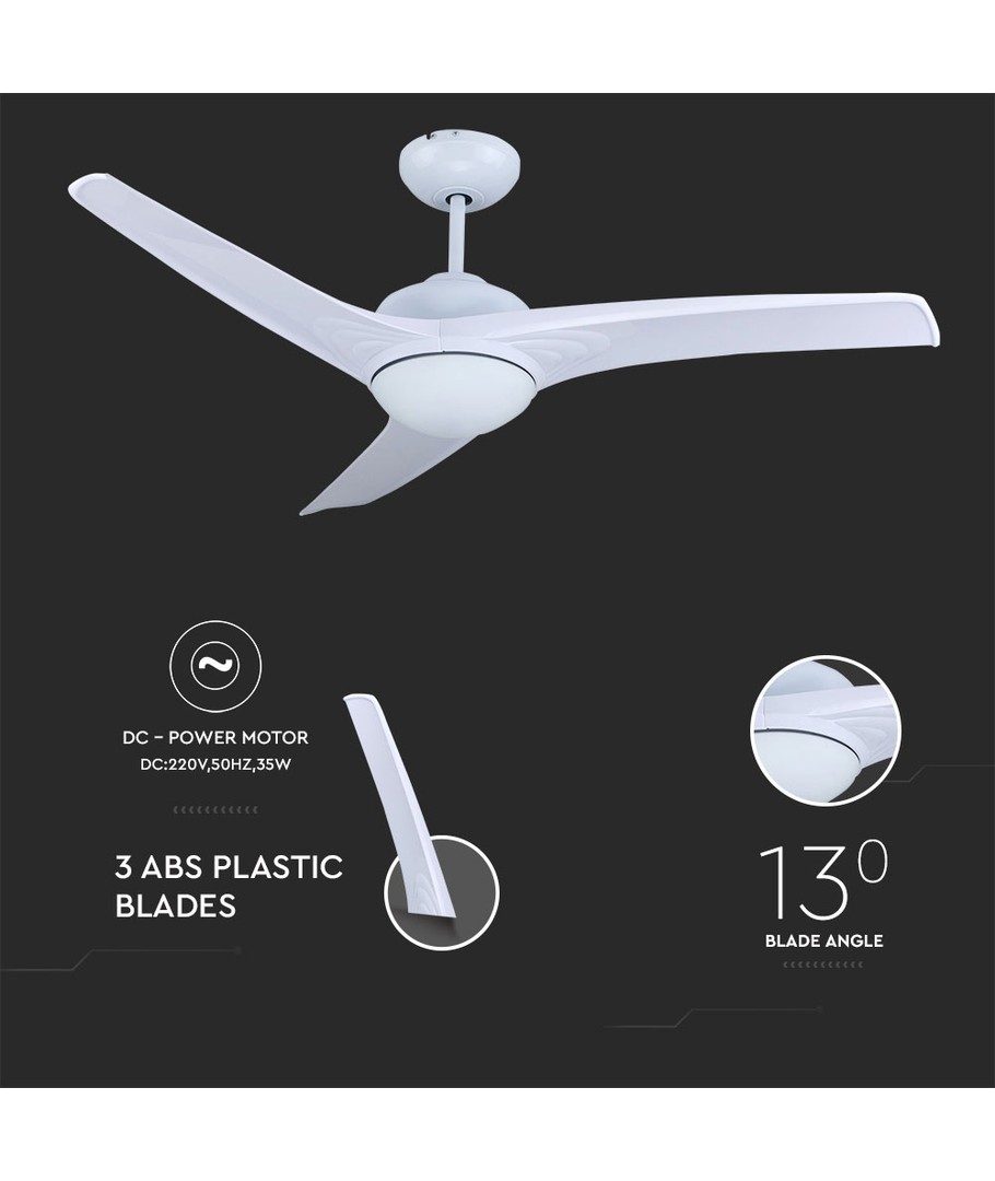 - Ontwerp: Modern wit ontwerp met drie bladen, passend bij de meeste interieurs.