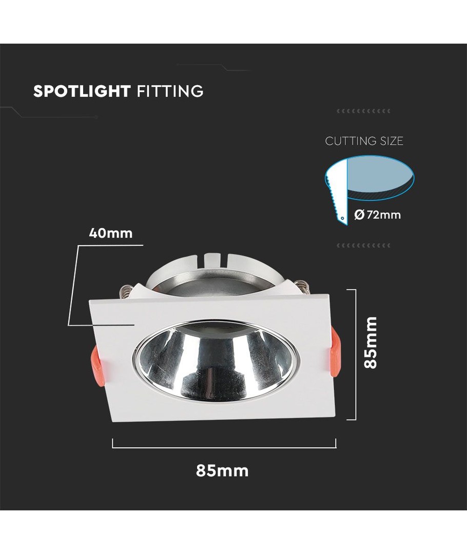 Ervaar een moderne en stijlvolle verlichtingskeuze met deze vierkante GU10 lamp. Het ontwerp is verfijnd met een witte lijst en een chroom reflector, die een vleugje elegantie toevoegt aan elke ruimte. Deze lamp maakt deel uit van de gerenommeerde V-Tac Pro serie, wat zowel kwaliteit als betrouwbaarheid garandeert.
