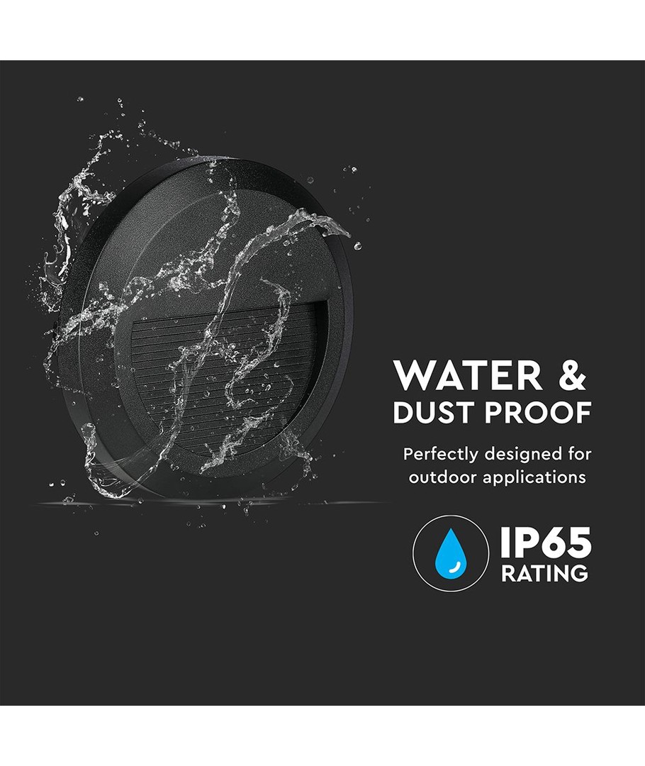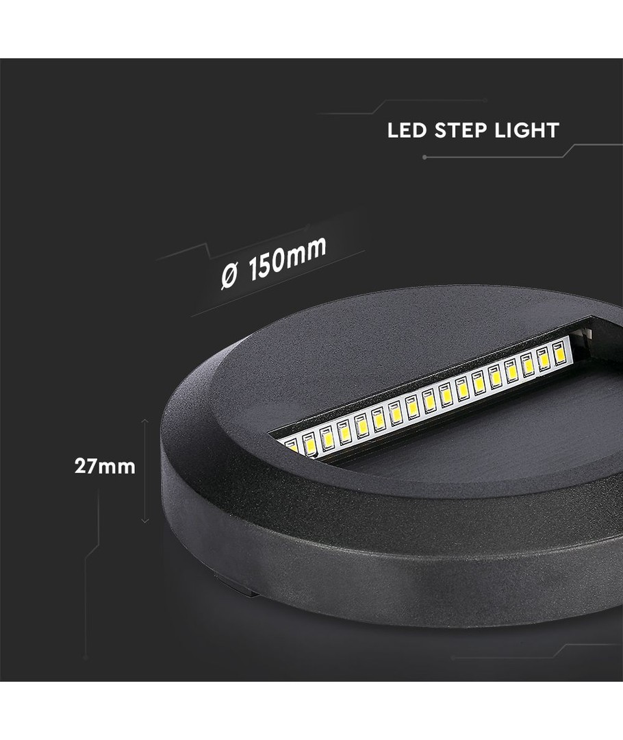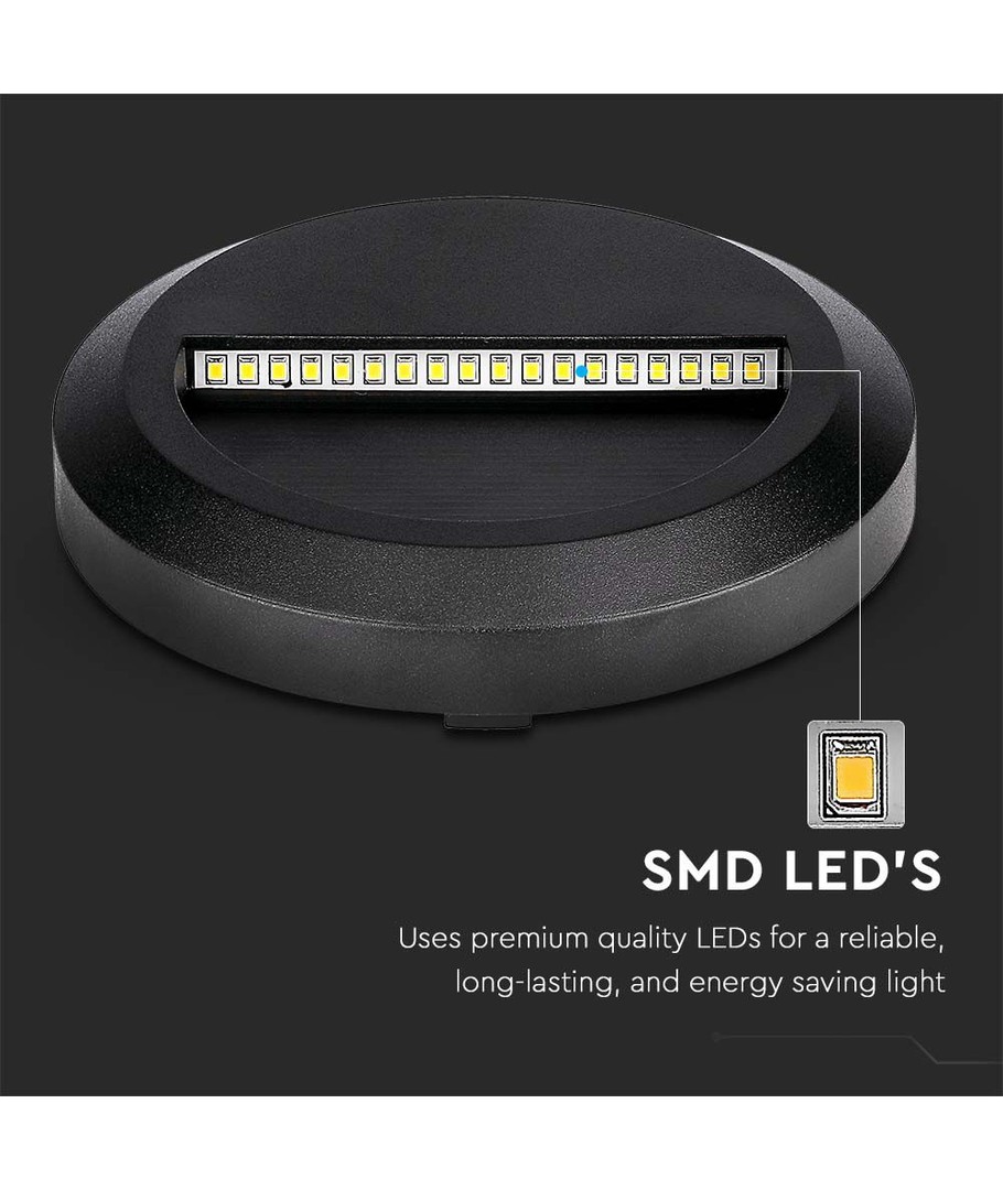 2W LED wandlamp voor trappen - Rond, zwart, 3000K, 80lm, Ø15cm, binnen / buiten V-TAC Uitklappen