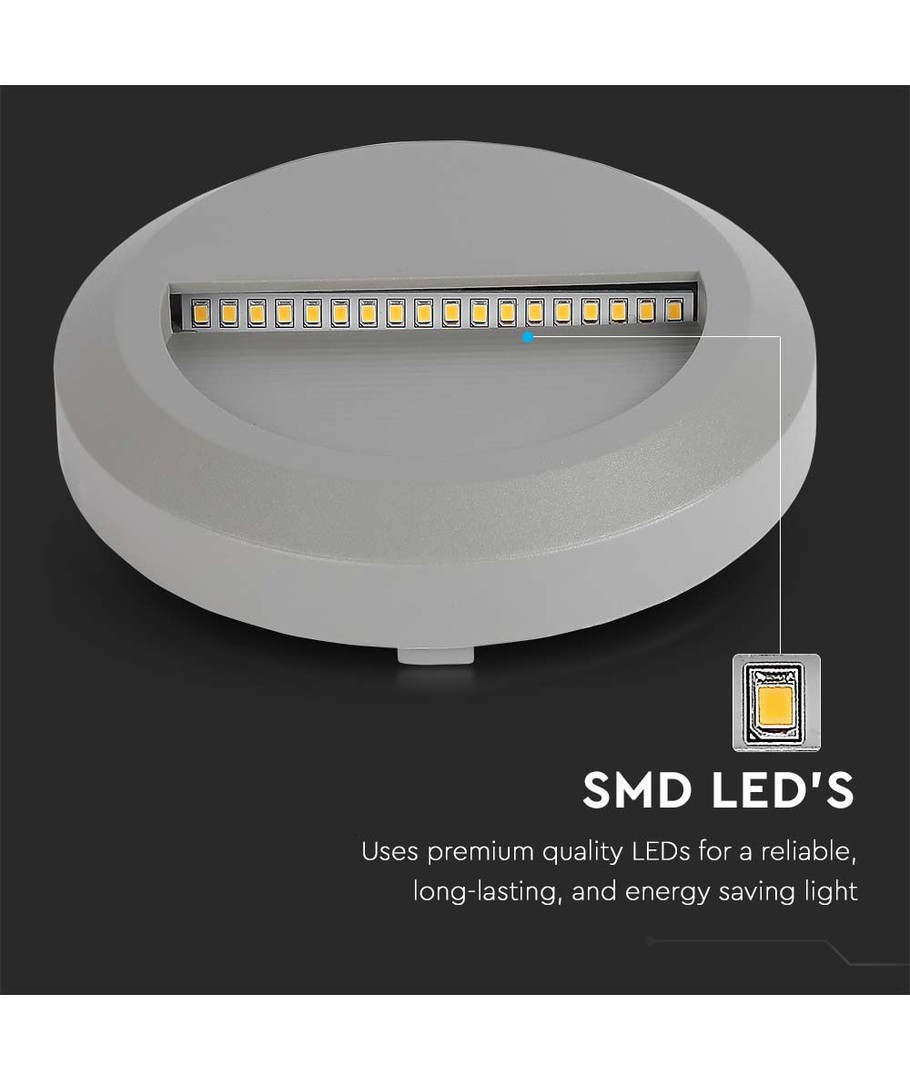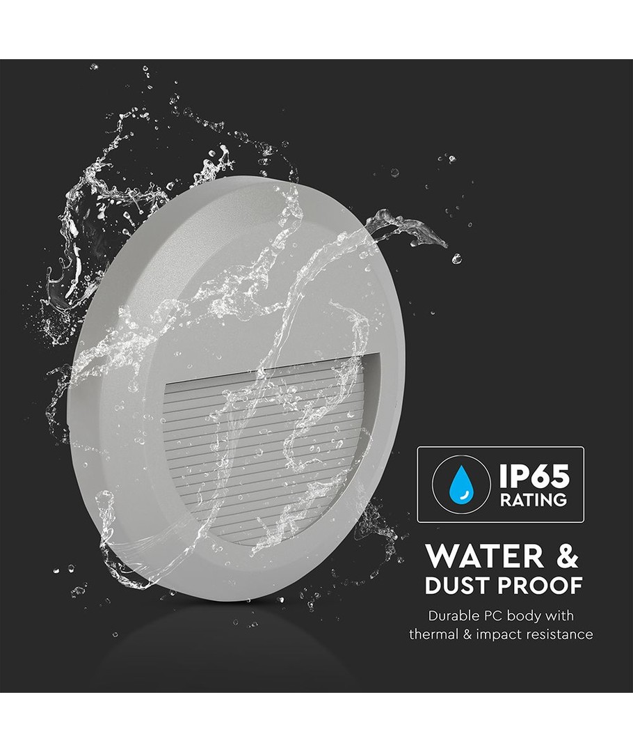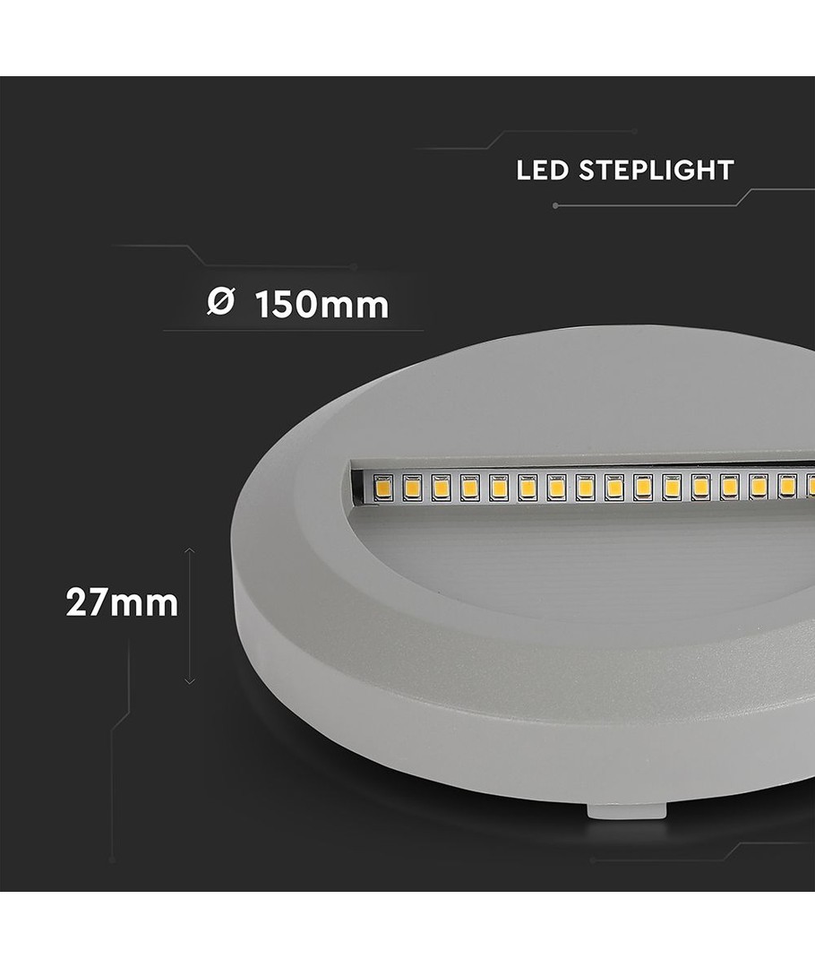 De trapverlichting is vervaardigd in een stijlvolle grijze behuizing met de afmetingen 150 x 27 mm, wat het eenvoudig maakt om te integreren in diverse omgevingen. Het is ontworpen in een rond formaat, wat zorgt voor een eenvoudige en tegelijkertijd moderne uitstraling.