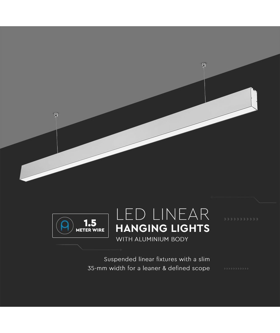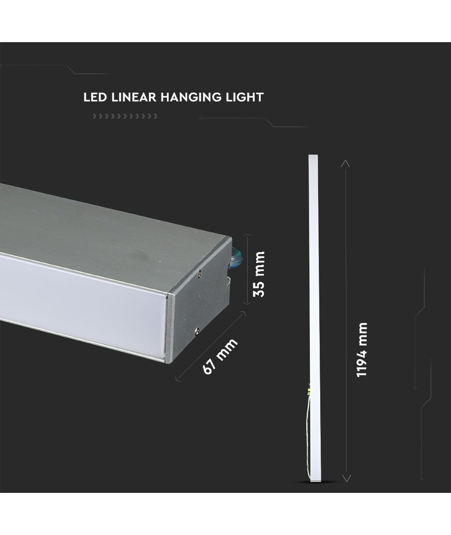 Ervaar efficiënte verlichting met deze lineaire hanglamp. 40W vermogen en een lichtstroom van 3300 lumen zorgen voor krachtig licht. De hoge spreidingshoek van 120 graden zorgt voor een gelijkmatige lichtverdeling, wat optimale werkomstandigheden creëert.