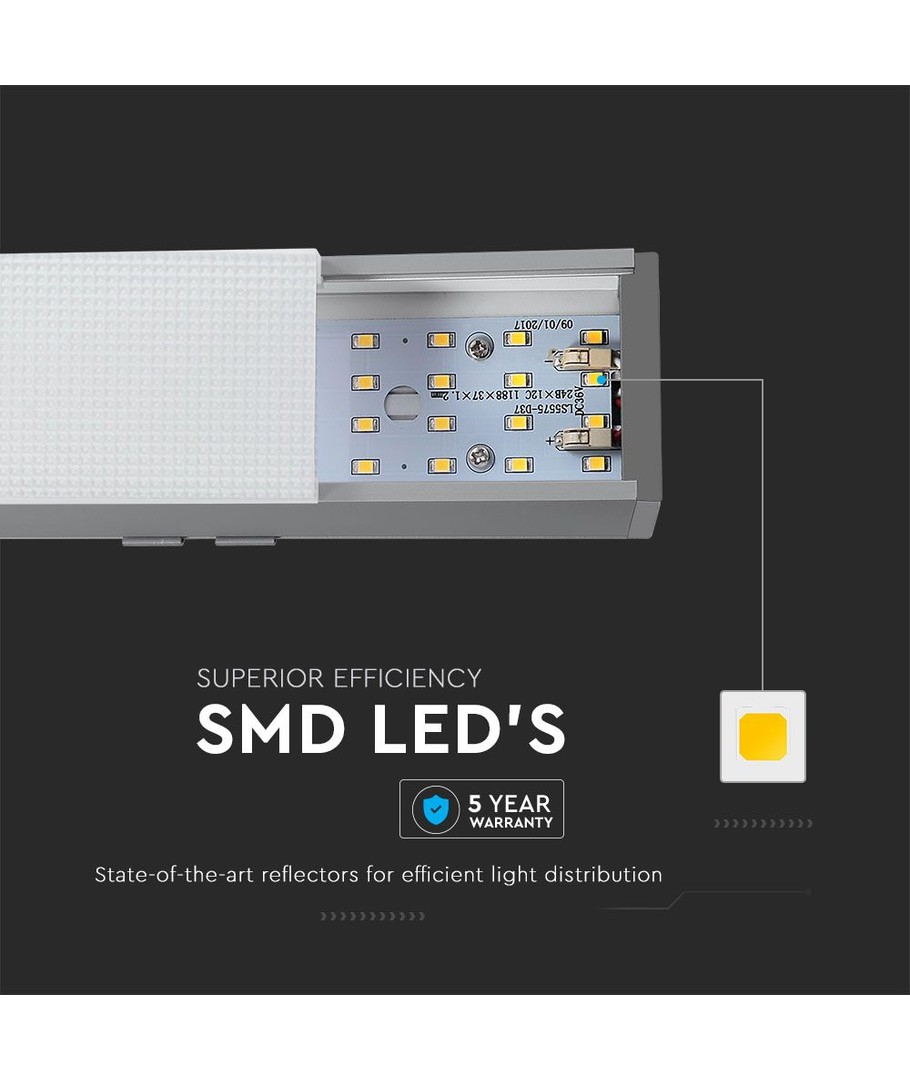 Geeft een moderne uitstraling met een zilver behuizing en afmetingen van 1197 x 50 x 65 mm. Dit strakke design past gemakkelijk in verschillende ruimtes en interieurstijlen.