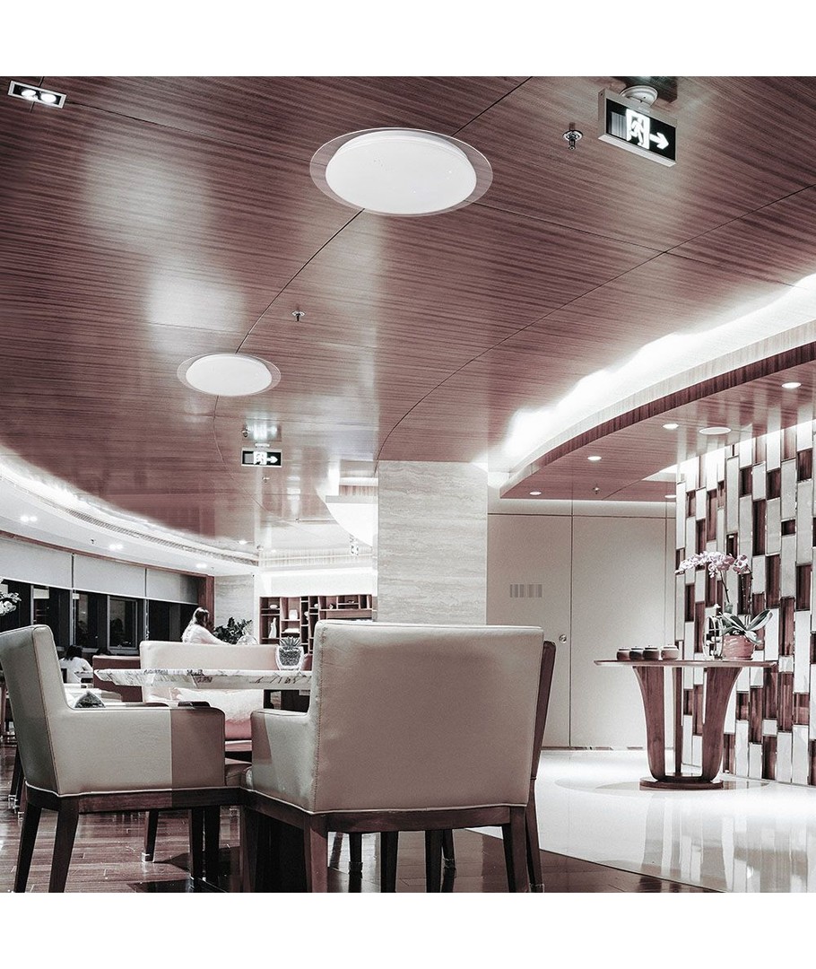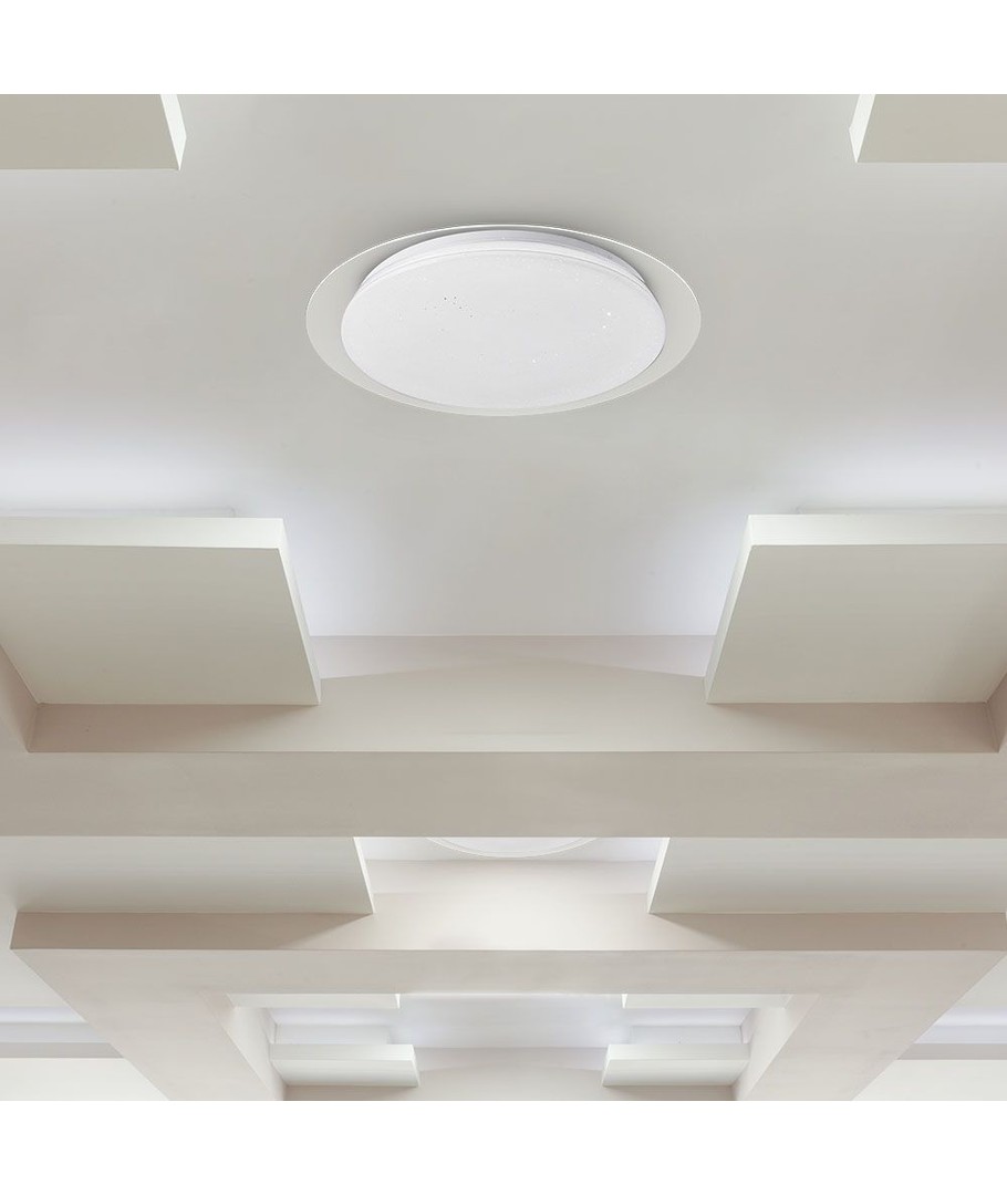 Het ontwerp van de lamp past bij moderne interieurstijlen en heeft een verfijnde sterafwerking die een subtiel fonkelend effect aan de ruimte toevoegt.