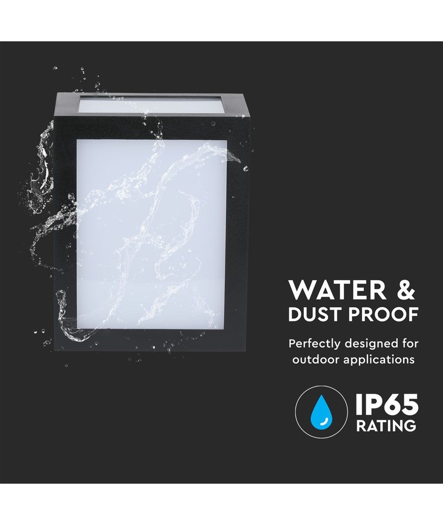 Gebouwd om de elementen te weerstaan, biedt de lamp met zijn IP65-classificatie bescherming tegen waterstralen en regen, waardoor hij perfect is voor buitengebruik. De zwarte behuizing geeft een modern uiterlijk dat in de meeste omgevingen past.