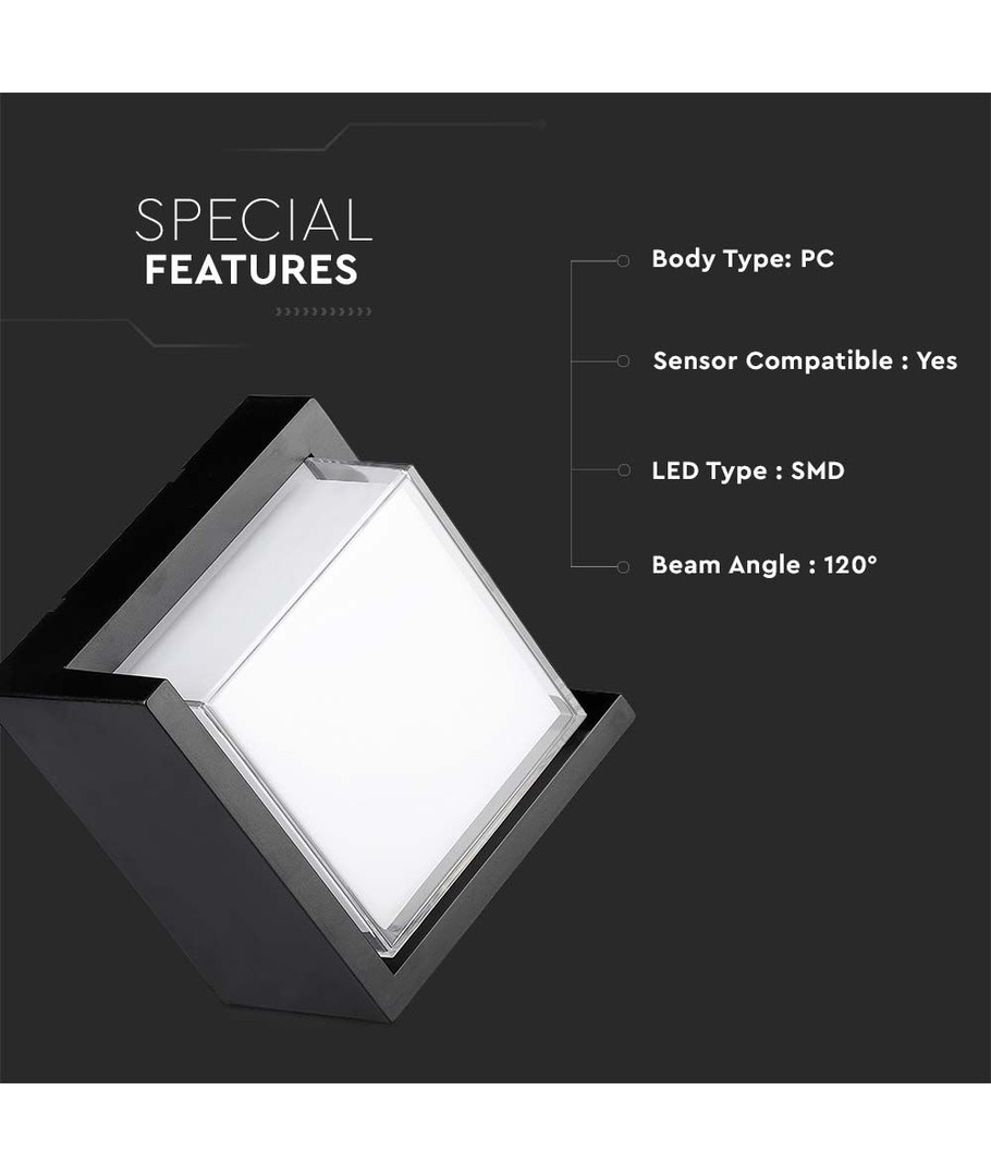 Geef je buitenverlichting een moderne upgrade met deze 12W LED wandlamp. De vierkante vorm en het strakke zwarte design maken deze lamp de perfecte keuze voor wie duurzaamheid en esthetische aantrekkingskracht zoekt.