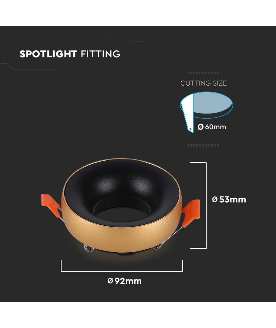 Ervaar de perfecte combinatie van stijl en functionaliteit met deze ronde GU10 lamp, omlijst met een gouden lijst en uitgerust met een zwarte reflector. Als onderdeel van de V-Tac Pro serie belooft deze lamp zowel esthetische aantrekkingskracht als betrouwbare prestaties.