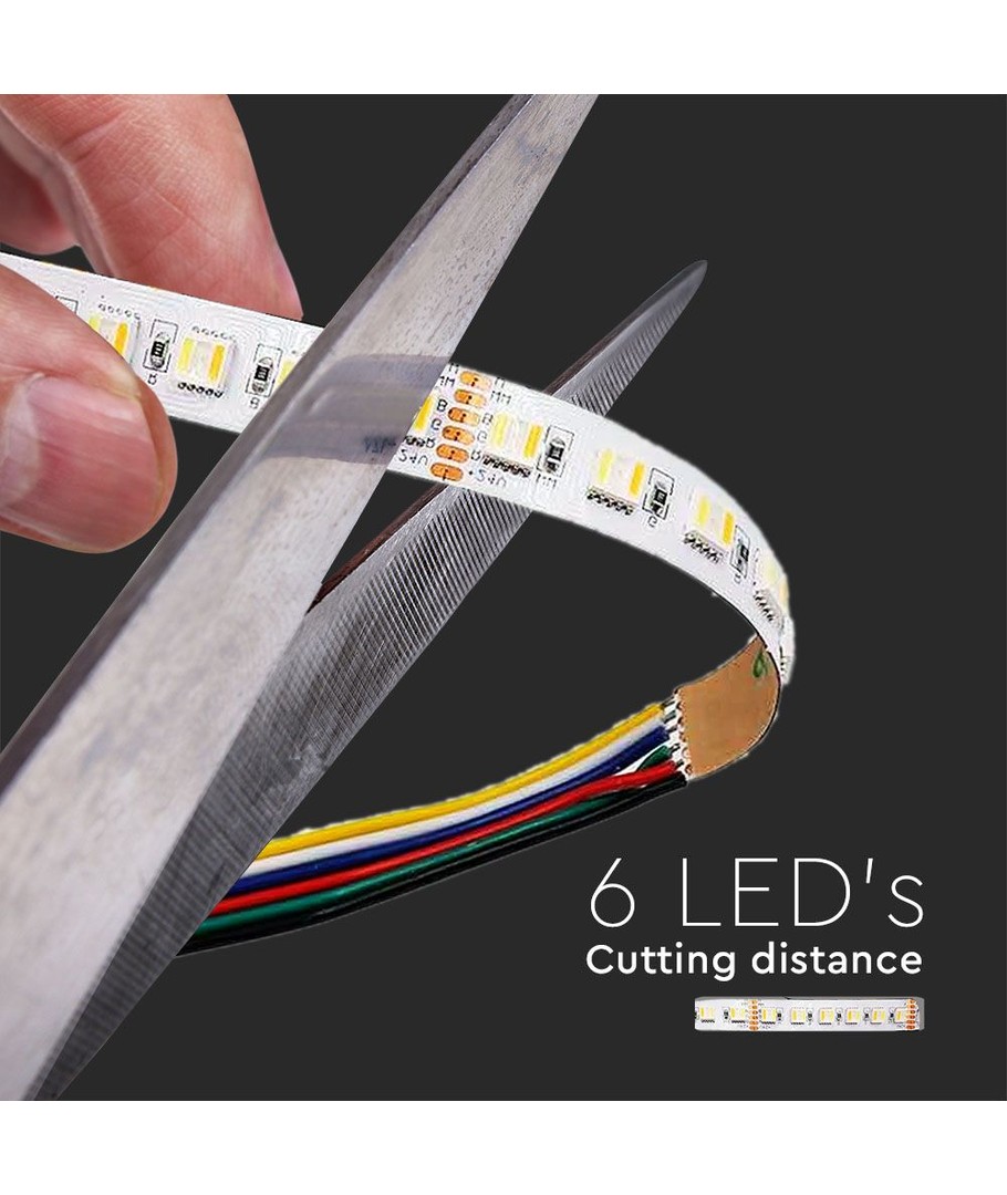 Ervaar een uitzonderlijke combinatie van wit licht en RGB-kleuren, waarmee u dynamische lichtscenario's kunt creëren. De lichtstrip is ontworpen om energie- en ruimtebesparing te bieden zonder concessies te doen aan de kwaliteit van de verlichting.