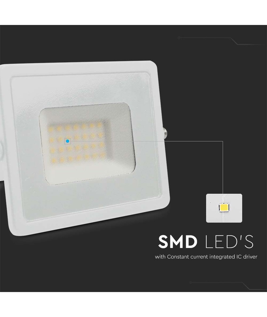 Ervaar krachtige verlichting met deze 30W schijnwerper, die een lichtstroom van 2510 lumen levert. De schijnwerper zorgt voor een gelijke verdeling van het licht met een spreidingshoek van 100 graden. Perfect voor gebieden waar krachtig koud licht vereist is.