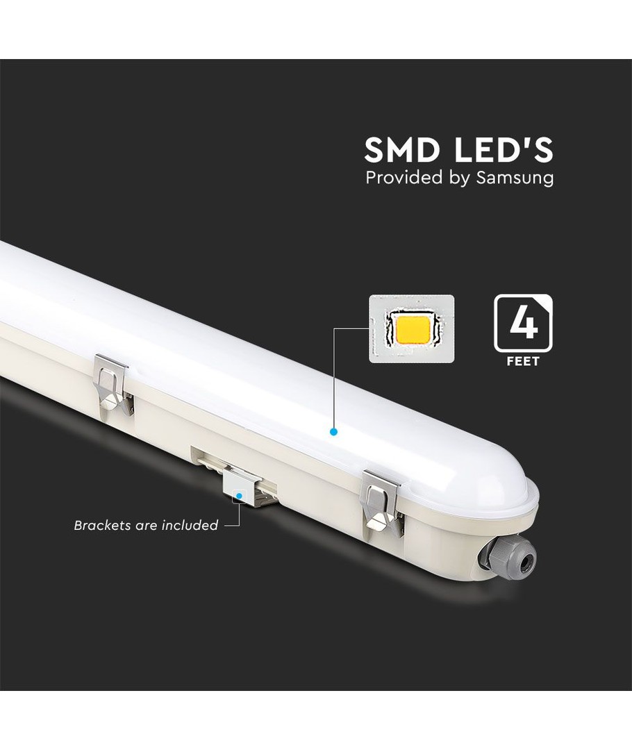 Ervaar een lichtopbrengst buiten het gewone met deze 36W LED lamp, ontworpen voor zowel binnen- als buitengebruik. Met een afmeting van 1200 x 72 x 78 mm is de lamp perfect om grotere gebieden te verlichten met zijn hoge spreiding van 120 graden.