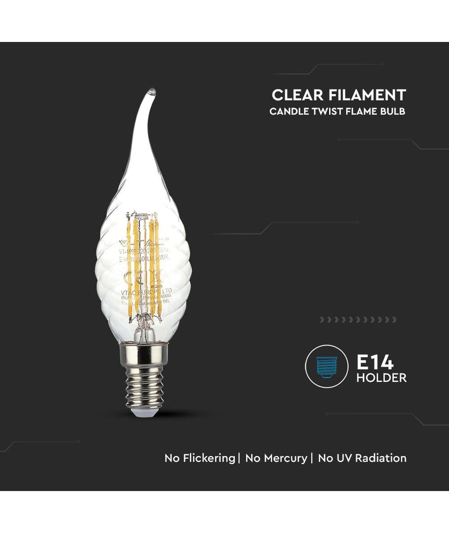 Ervaar een gelijke lichtverdeling en een indrukwekkende lichtsterkte van 400 lumen met deze 4W kaarslamp. De kleine E14 fitting maakt hem ideaal voor een breed scala aan lampen en armaturen.
