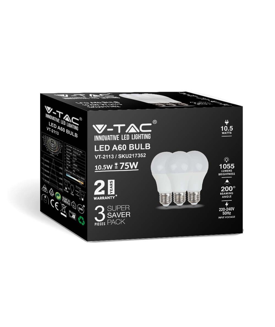 Met deze A60 LED-lampen krijgt u hoge kwaliteit en duurzame verlichting in een verpakking van 3 stuks. Ze zijn perfect om een uitnodigende thuisomgeving te creëren, terwijl ze een laag energieverbruik behouden.
