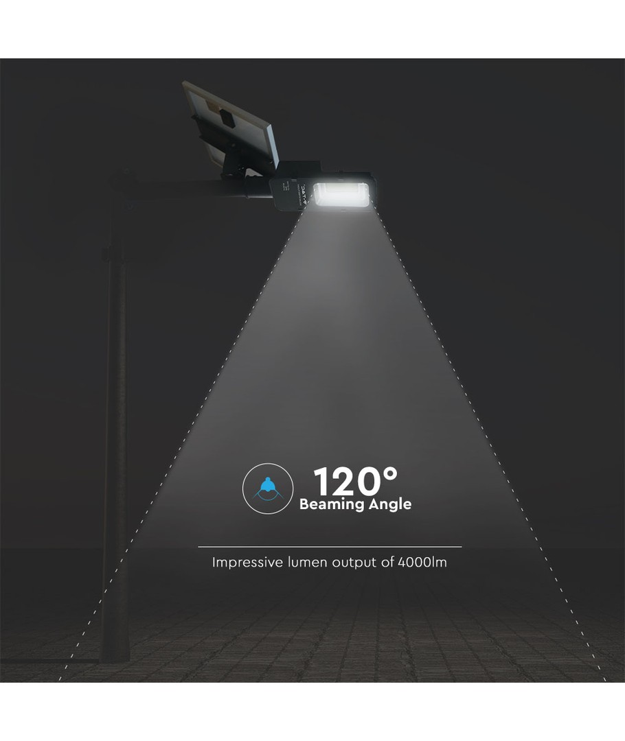 Transformeer buitenruimtes met deze krachtige Zonnepaneel LED Straatverlichting, die hoge prestaties combineert met energie-efficiëntie. Met een lichtsterkte van 4000 lumen en een brede lichthoek van 120 graden is het ideaal voor een gelijkmatige lichtverdeling over grotere gebieden.