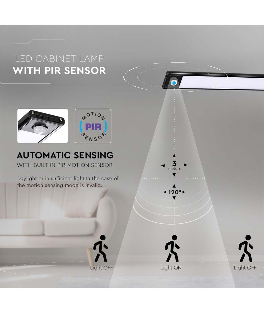 Let op, de kastlamp is voorzien van een PIR-sensor die het licht automatisch laat aangaan wanneer beweging wordt gedetecteerd, wat zowel het comfort als de energiebesparing verhoogt. Deze lamp, met zijn functionele ontwerp en geavanceerde technologie, is perfect voor wie een efficiënte en slimme verlichtingsoplossing voor hun kasten zoekt.